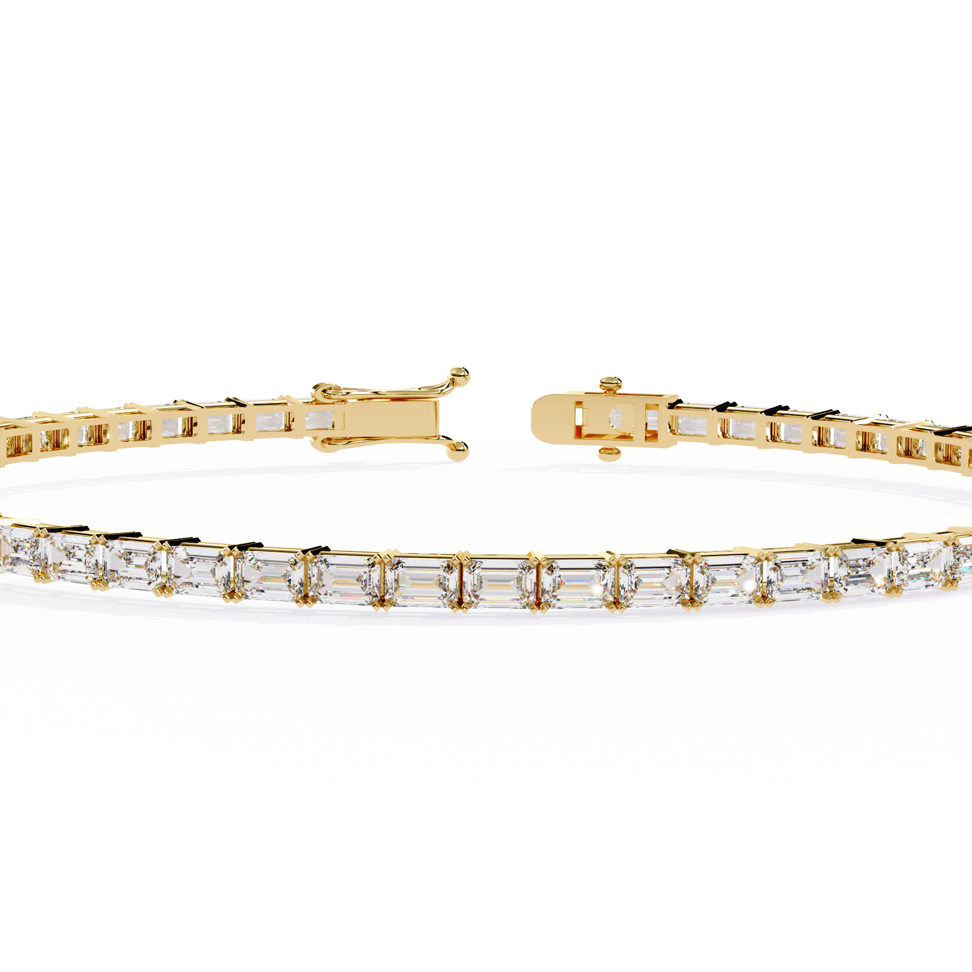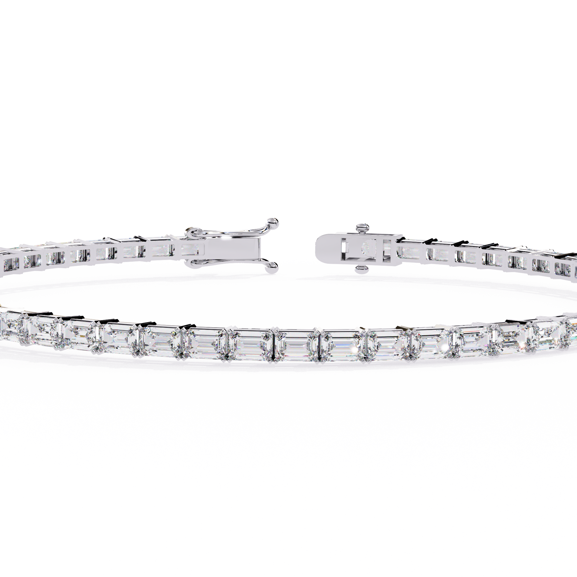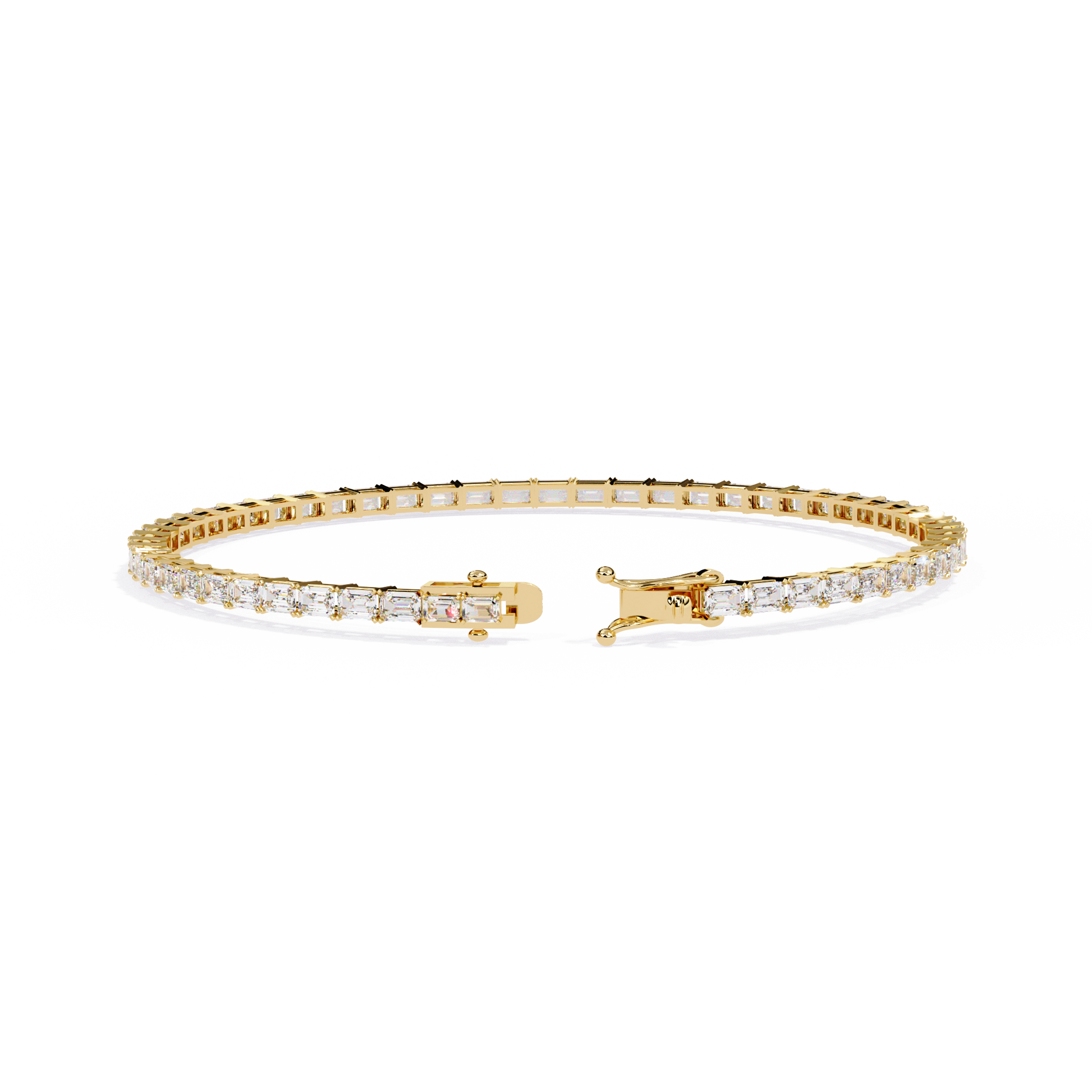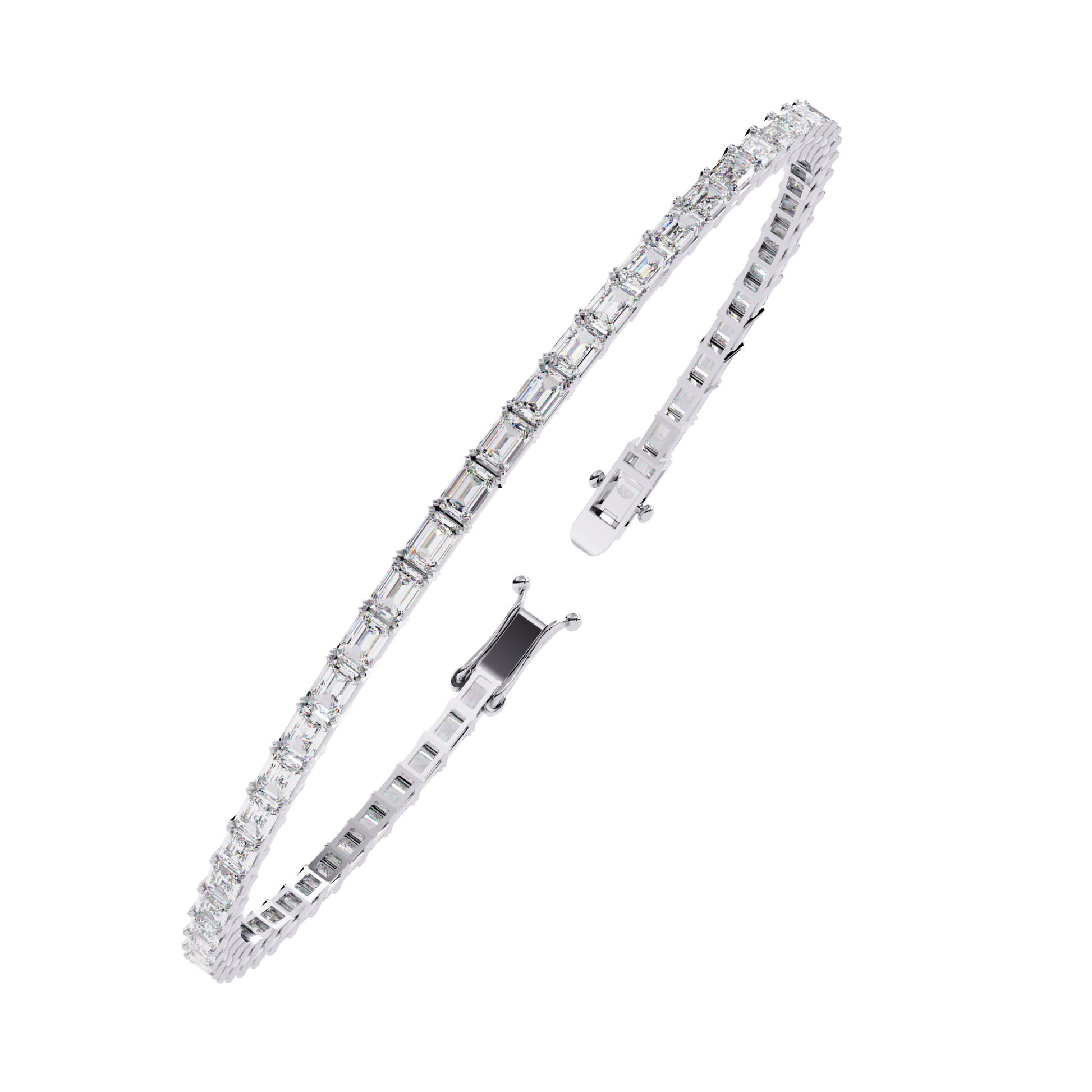 This stunning tennis bracelet features a continuous line of emerald-cut diamonds, known for their sophisticated shape and captivating clarity. The clean, geometric lines of each diamond create a modern yet timeless look, reflecting light with refined brilliance. Expertly set and finished with a secure clasp, this bracelet embodies luxury, precision, and elegance, making it a perfect statement piece for any occasion.