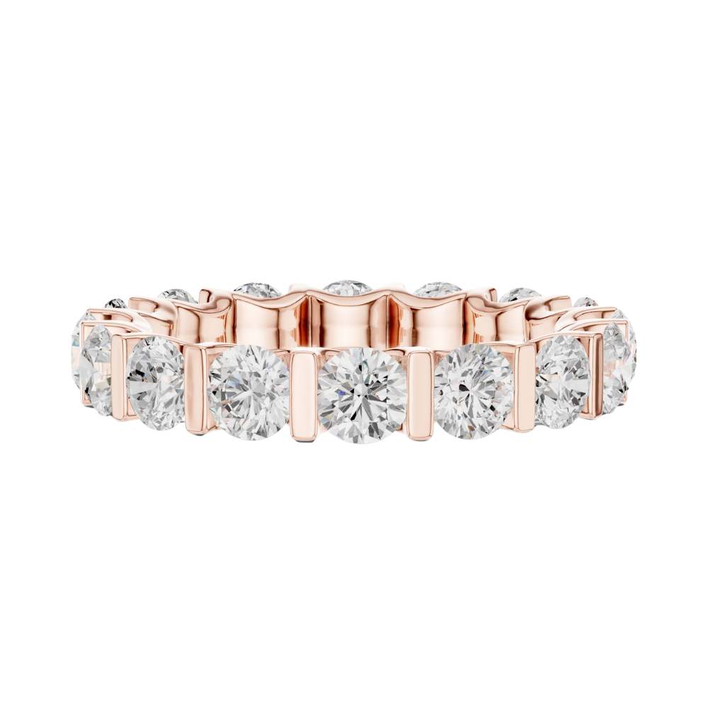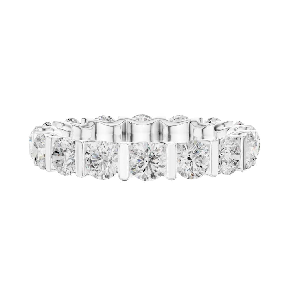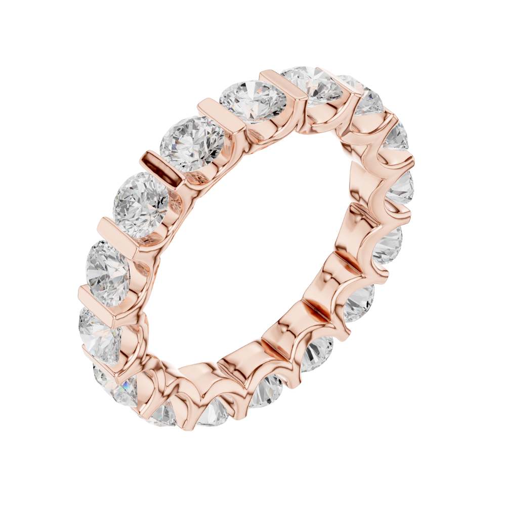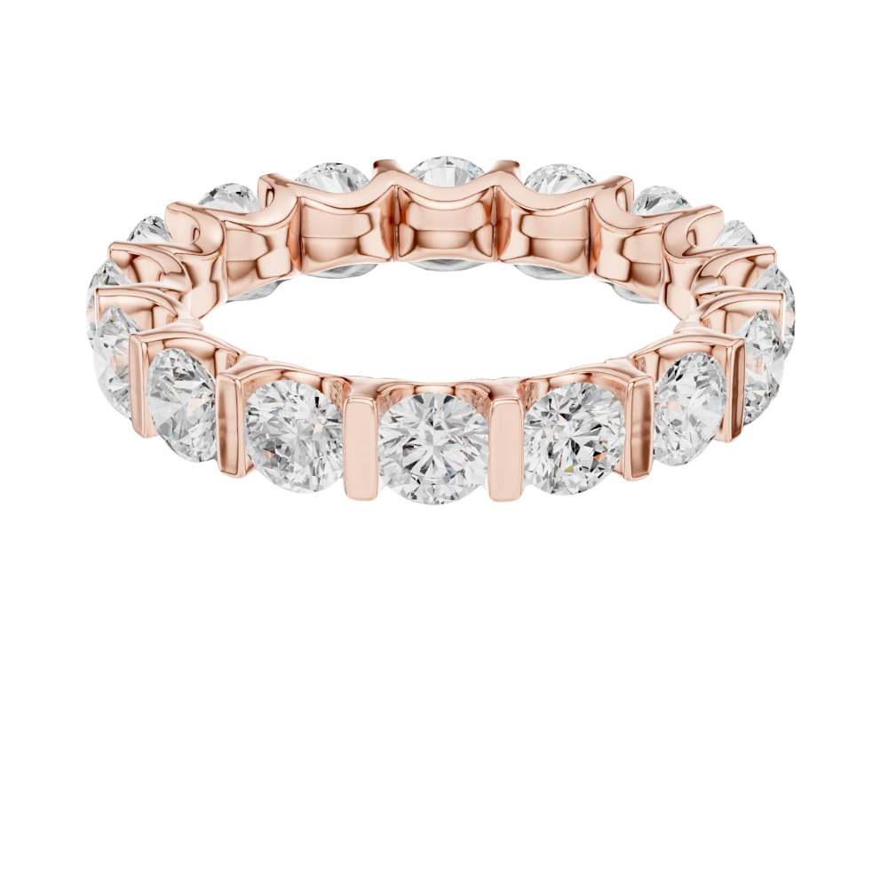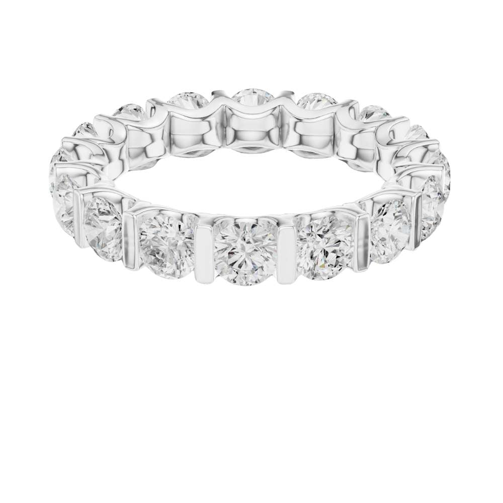 This ring is a luxurious full-eternity band crafted in polished gold, featuring a continuous circle of large round brilliant-cut diamonds. Each diamond is individually secured in a sleek four-prong setting that allows maximum light to pass through, creating exceptional sparkle from every angle. The repeating pattern of gold and diamonds gives the piece a bold, sophisticated look, making it a striking symbol of everlasting elegance.