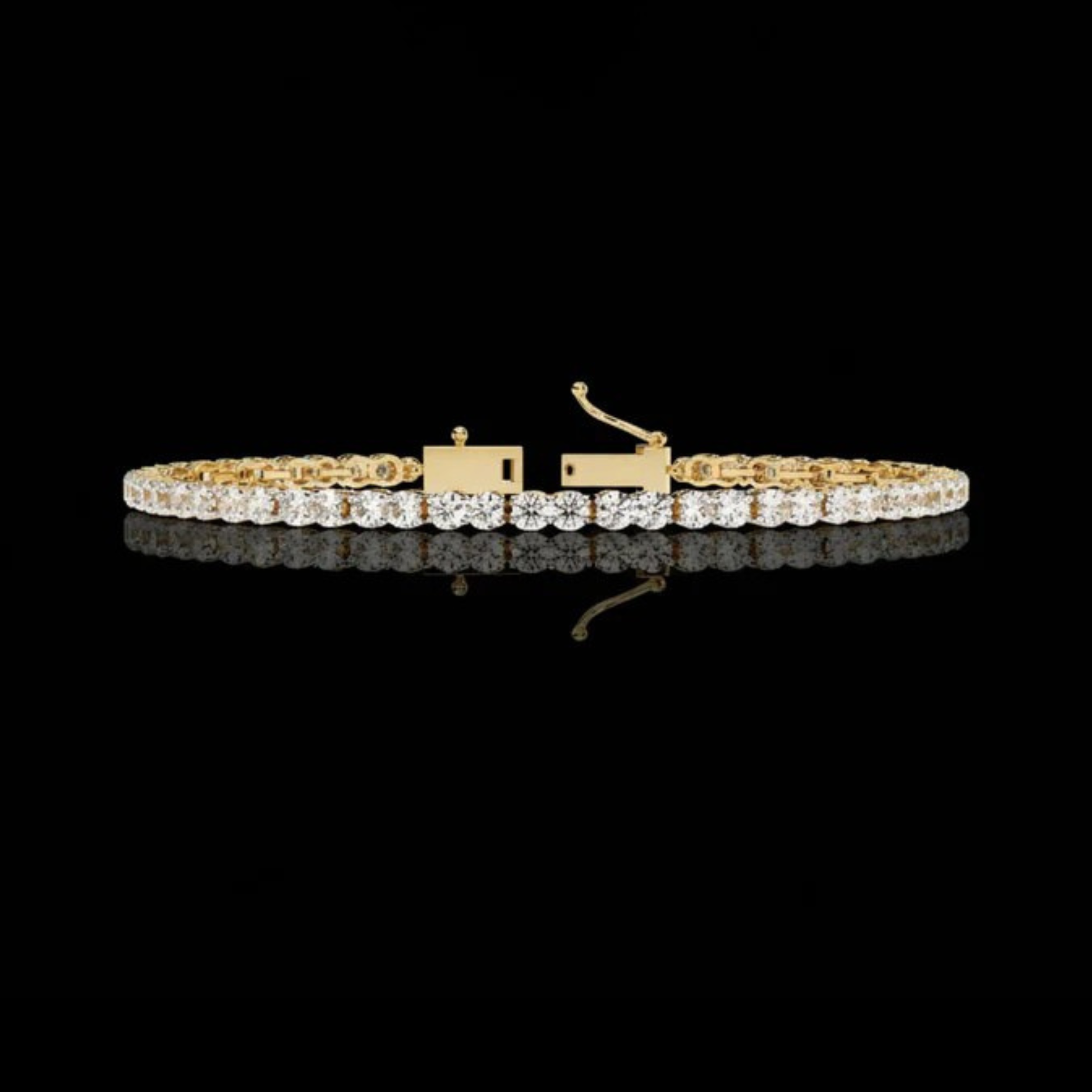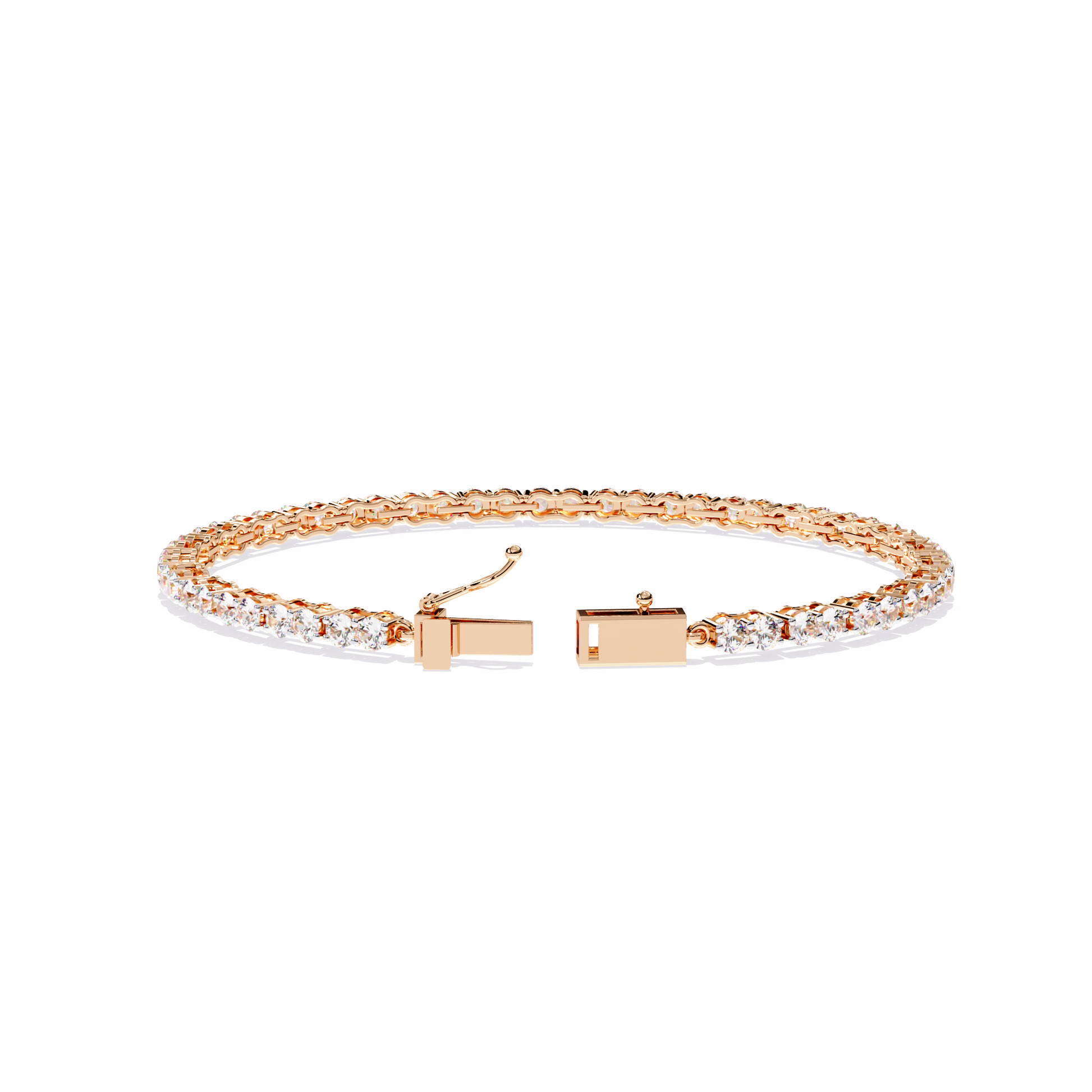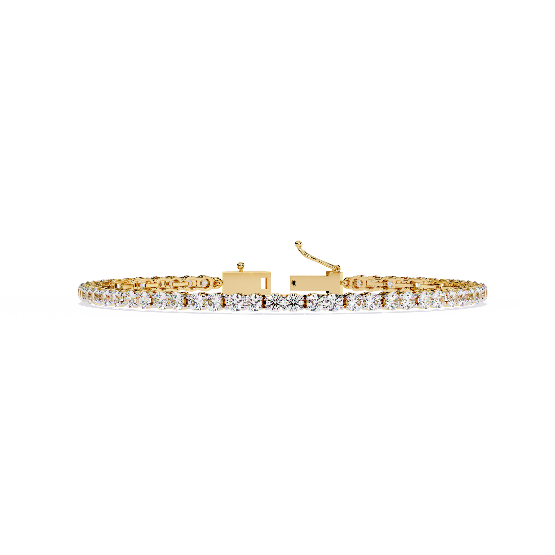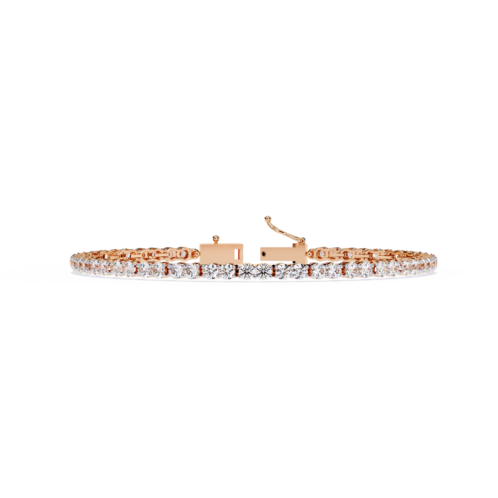 This exquisite tennis bracelet showcases a continuous line of round brilliant-cut diamonds, each meticulously set to reflect maximum brilliance and fire. Designed with a secure box clasp and safety latch, it offers both elegance and durability for everyday wear or special occasions. A timeless piece that exudes luxury, grace, and refinement, perfect for enhancing any jewelry collection.