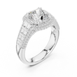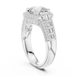 3.00 CT Cushion Center Lab Grown Diamond Pave Halo Setting and Baguette Side Stone Ring Designer Bridal Fine Jewelry