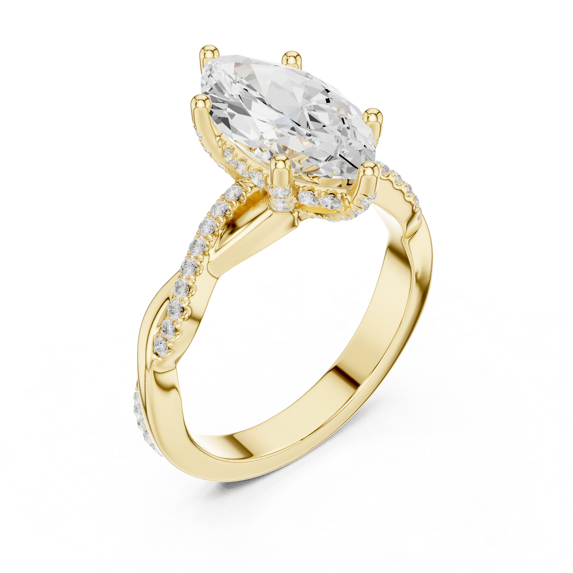 This breathtaking Marquise Cut Diamond Ring from Ivevar Luxury is designed to captivate with its elongated silhouette and refined brilliance. The marquise center stone creates a flattering, lengthened look on the finger, while delicate pave-set diamonds along the gold band add subtle sparkle and elegance. Crafted with a smooth polished finish, this ring blends classic beauty with modern sophistication.