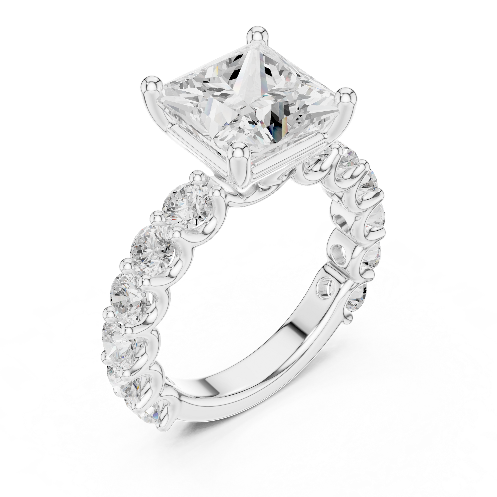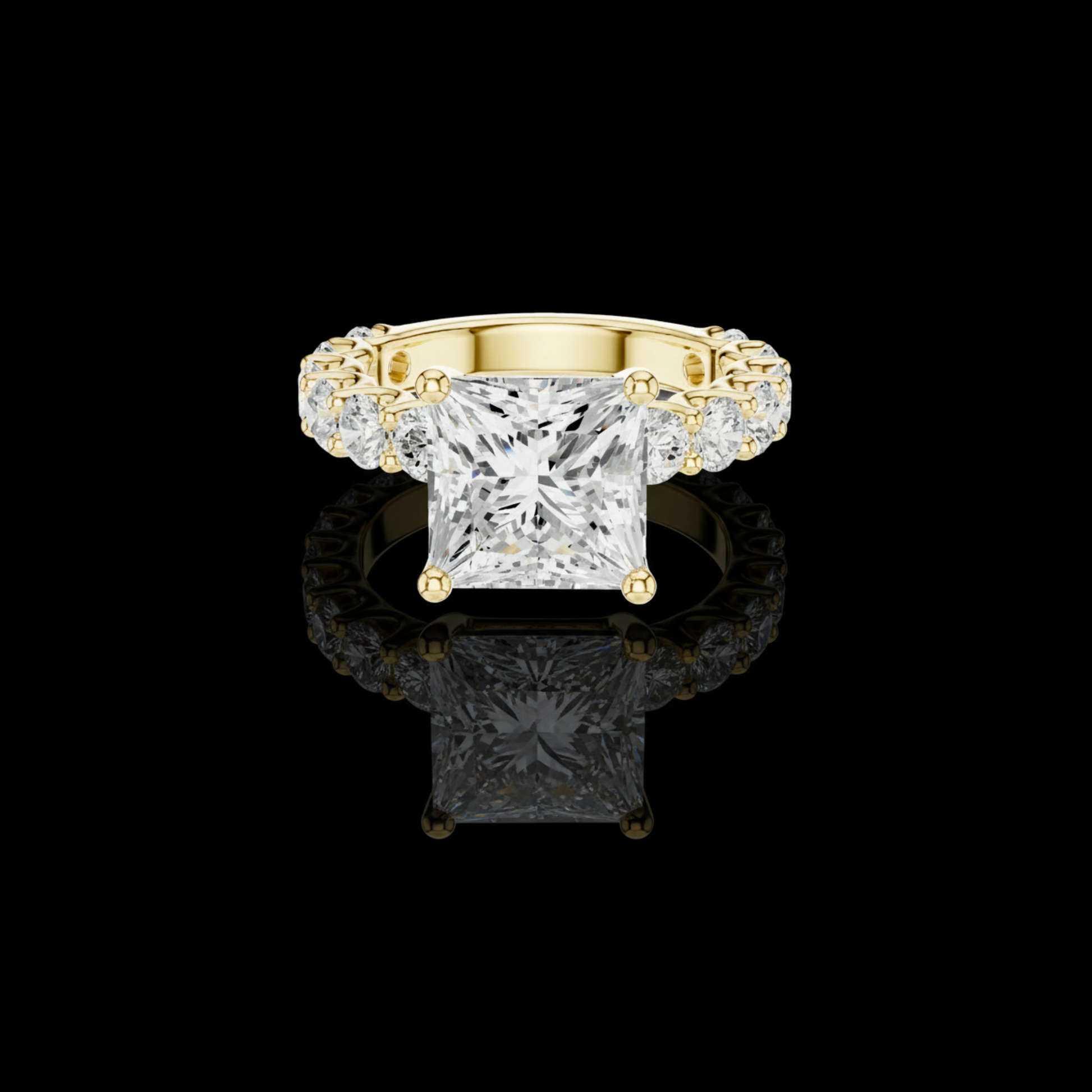 This stunning Princess Cut Diamond Ring from Ivevar Luxury features a bold Princess center stone that radiates crisp brilliance and modern elegance. The band is adorned with sparkling round side diamonds, creating a luxurious, high-shine profile from every angle. Crafted in polished gold, the thick band adds structure and richness, making this piece perfect for someone who loves statement fine jewelry.