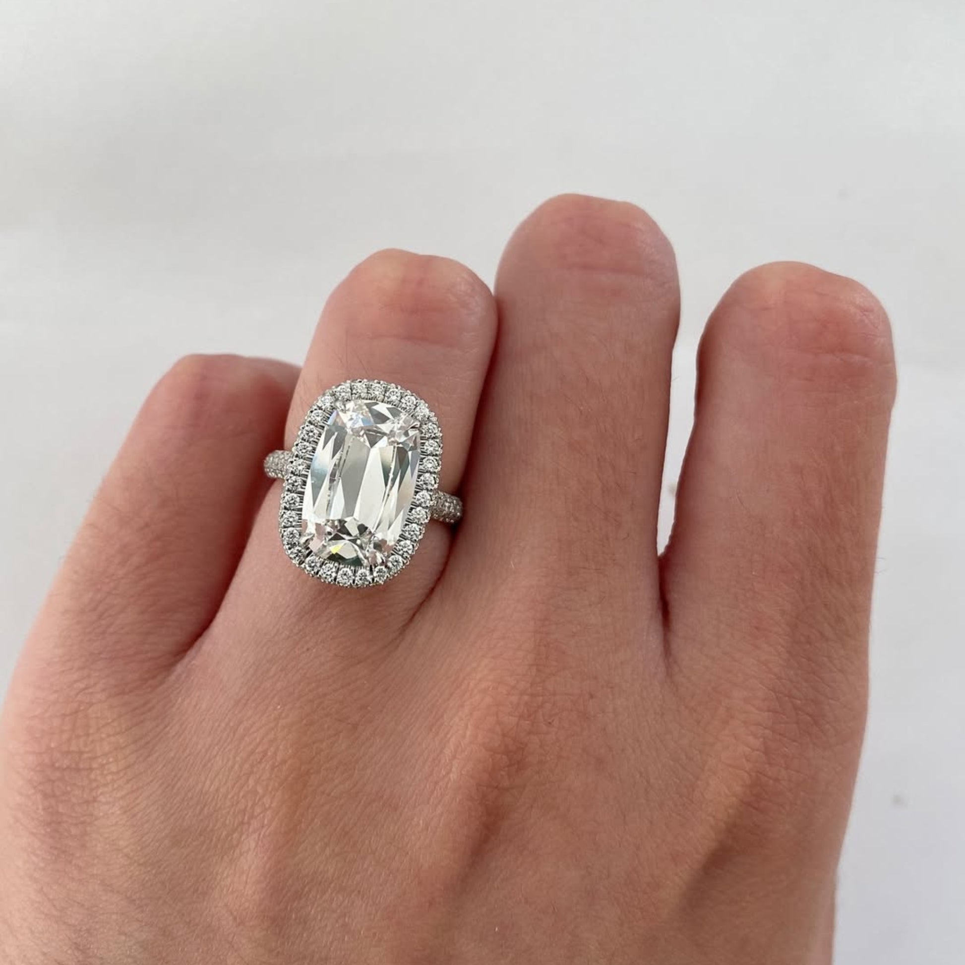 This stunning engagement ring features a breathtaking oval radiant-cut center stone that captures light from every angle. Framed by a sparkling diamond halo, the elongated shape enhances brilliance while creating a timeless, sophisticated look. The band is adorned with micro pave diamonds, adding extra shimmer and elegance without overpowering the centerpiece. Ideal for engagements, anniversaries, or special milestones, this ring is designed to stand out with its exceptional sparkle, premium craftsmanship, and eye-catching silhouette.