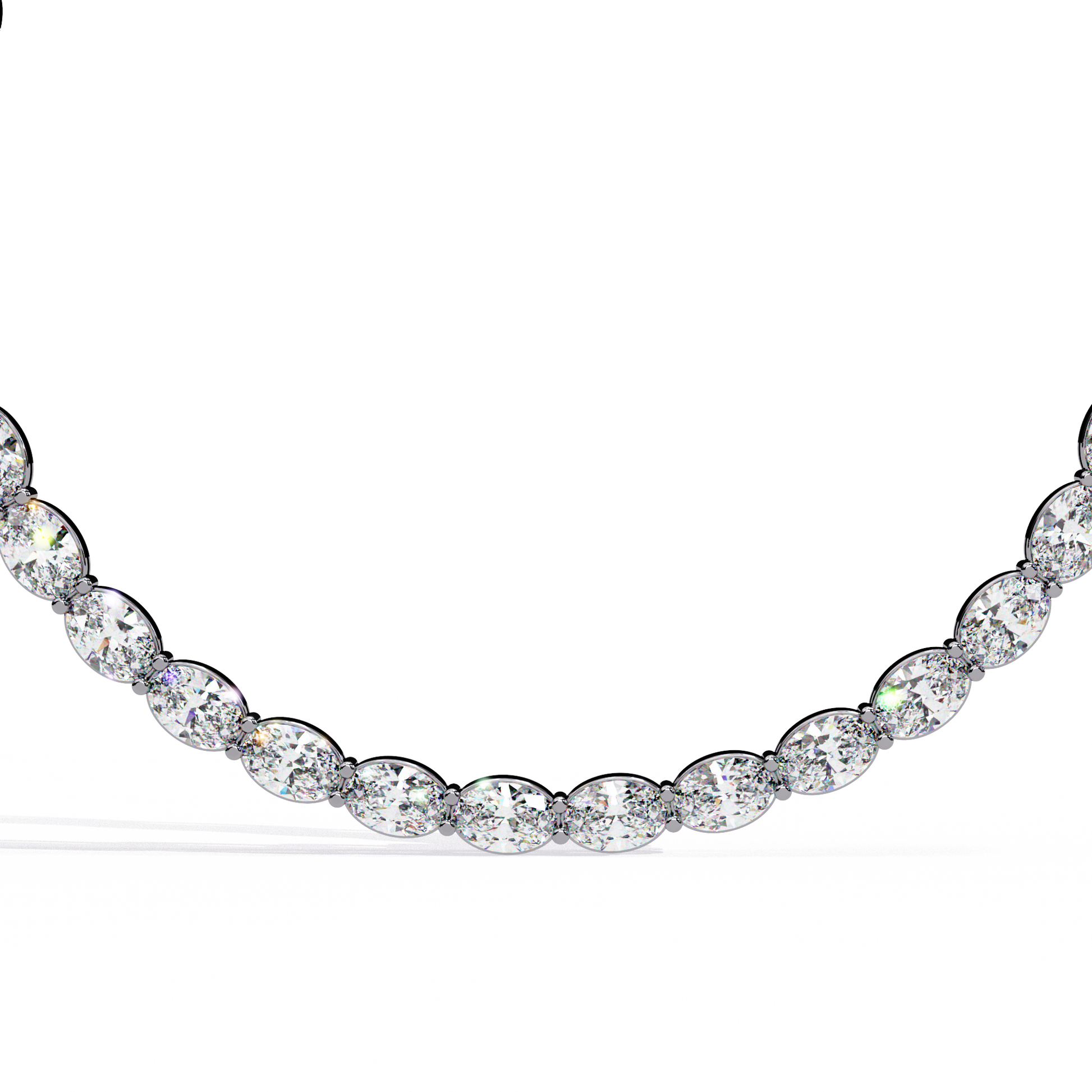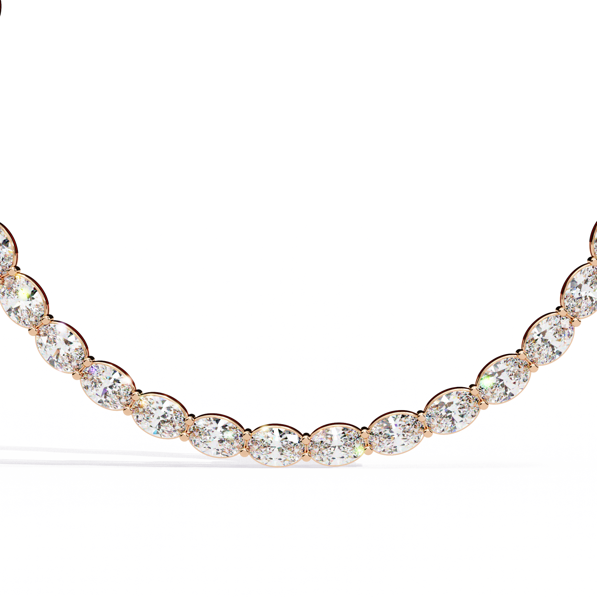 This image showcases an Classic Diamond Tennis Necklace, featuring a continuous row of Brilliant Oval Cut Diamonds set in a delicate gold framework. Each stone is meticulously aligned to create a seamless flow of sparkle and sophistication, reflecting light from every angle. The craftsmanship highlights luxury and precision, making it an exquisite statement piece suitable for formal occasions or as a symbol of timeless refinement by Ivevar Luxury.
