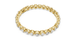 This elegant tennis bracelet showcases a continuous line of brilliant cushion-cut diamonds, each perfectly set in polished gold for a refined and luxurious look. The smooth, evenly spaced settings enhance the sparkle of every stone while ensuring a comfortable, flexible fit around the wrist. Finished with a bezel set clasp for confidence and ease of wear, this bracelet is a timeless piece designed to elevate both everyday outfits and special occasions with effortless sophistication by Ivevar.