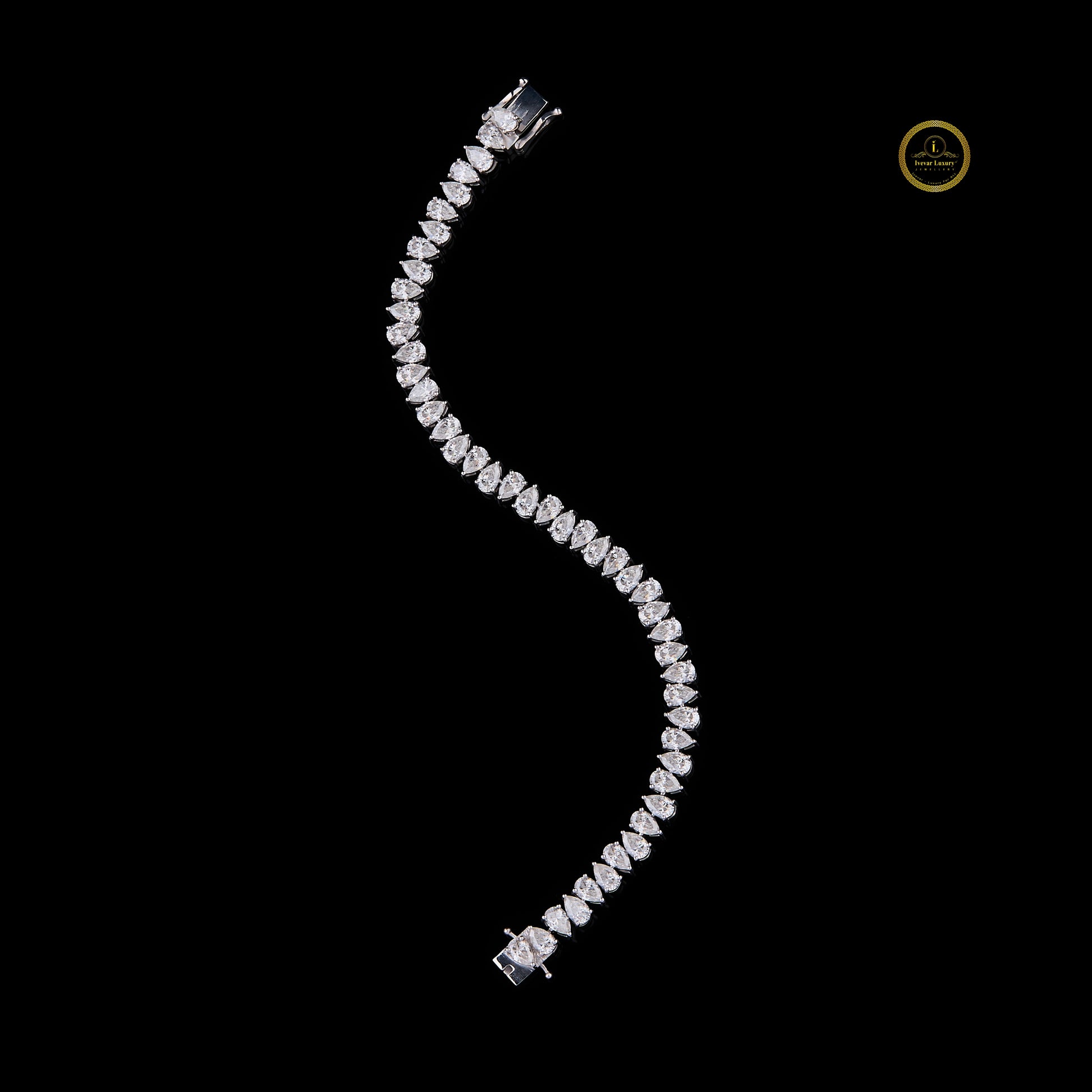 Radiating unparalleled brilliance, this pear-cut diamond tennis bracelet is a captivating blend of sophistication and modern glamour. Each meticulously matched pear-shaped diamond is prong-set in high-polish white gold, creating a shimmering ribbon of fire that wraps gracefully around the wrist. The elegant silhouette highlights the distinctive teardrop sparkle of every stone, offering a look that is both bold and refined. Perfect for red-carpet evenings, bridal elegance, or upscale everyday wear, this bracelet is a true statement piece crafted to elevate any jewelry collection.
