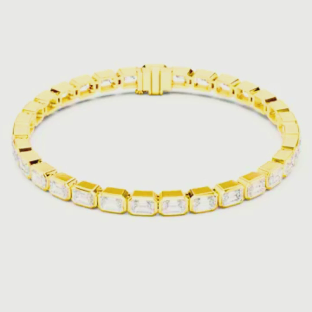 This stunning tennis bracelet features a series of beautifully cut emerald diamonds, each set in a warm gold bezel frame that highlights the unique step-cut facets of the gemstones. The bracelet’s sleek, geometric design offers a modern take on classic elegance, with each diamond perfectly aligned to create a continuous, radiant sparkle around the wrist. Designed for durability and comfort with a secure clasp, this piece is ideal for those who appreciate refined craftsmanship and timeless luxury from Ivevar.