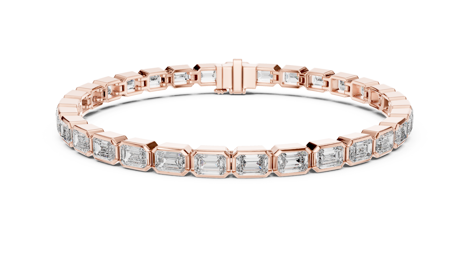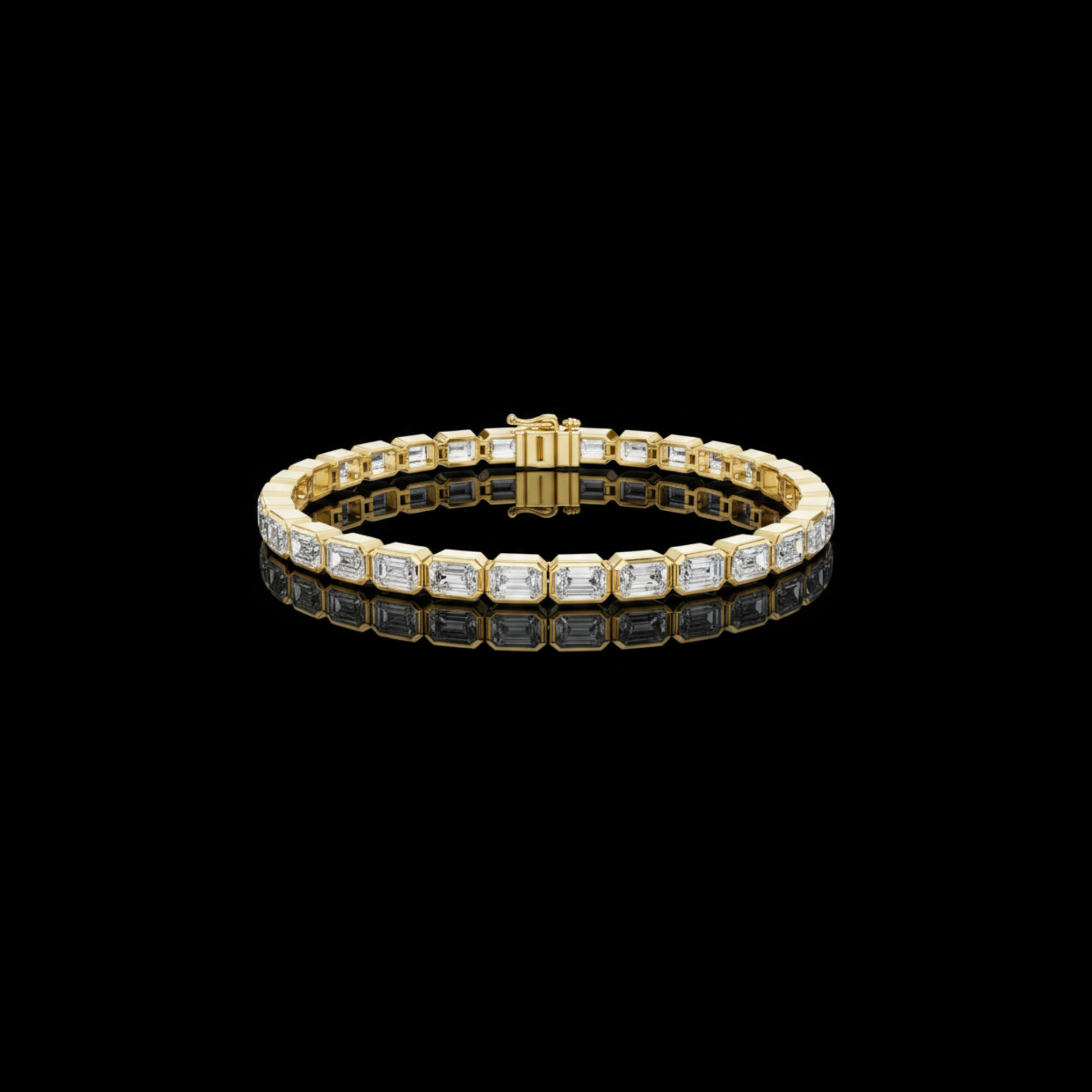 This stunning tennis bracelet features a series of beautifully cut emerald diamonds, each set in a warm gold bezel frame that highlights the unique step-cut facets of the gemstones. The bracelet’s sleek, geometric design offers a modern take on classic elegance, with each diamond perfectly aligned to create a continuous, radiant sparkle around the wrist. Designed for durability and comfort with a secure clasp, this piece is ideal for those who appreciate refined craftsmanship and timeless luxury from Ivevar.