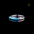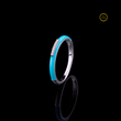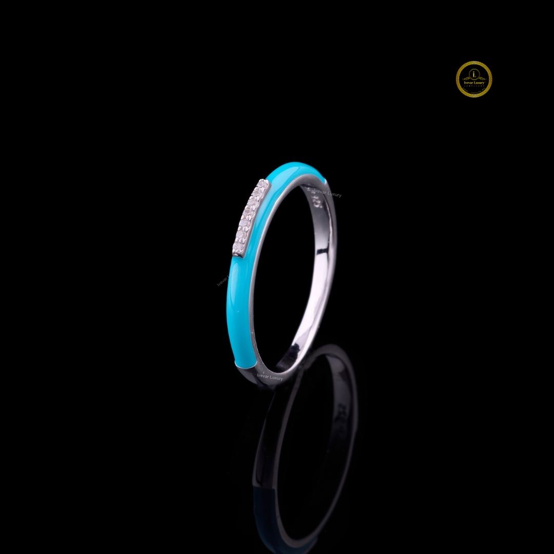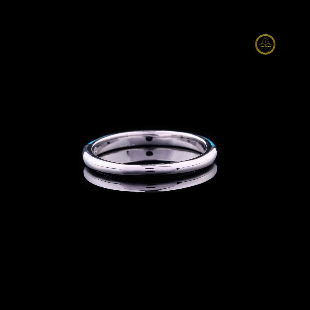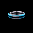 0.15 TCW Turquoise Enamel Slim White Gold Band with Pave Moissanite Diamond Center Detailing