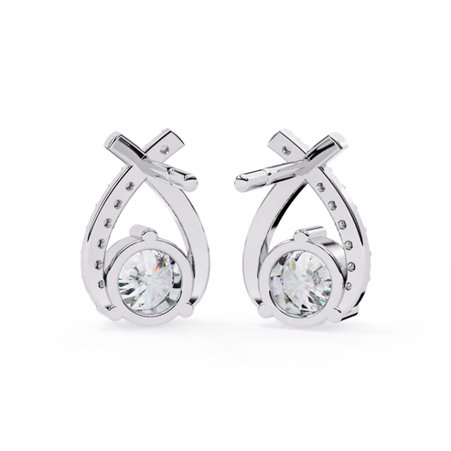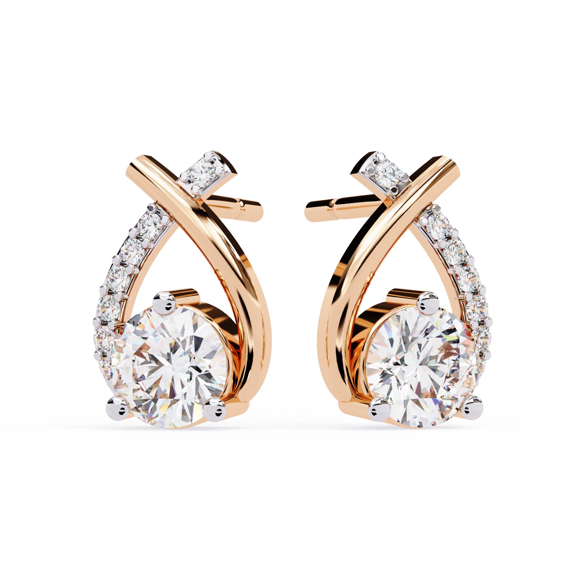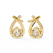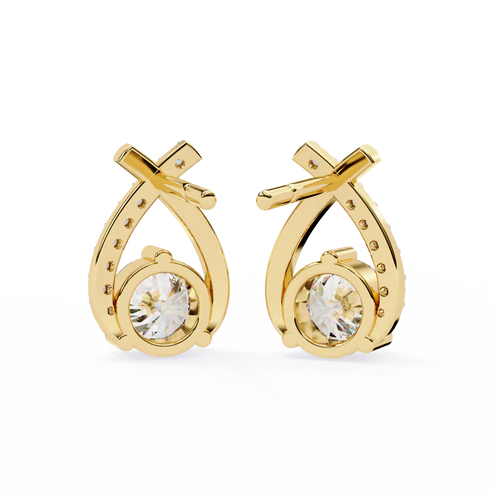 These elegant earrings feature a sophisticated teardrop-inspired design crafted in polished gold, gracefully intertwining to frame a brilliant round-cut center stone. Accented with a row of smaller sparkling stones along the curve, the design adds depth, shimmer, and a touch of refined luxury. Their fluid, sculptural shape creates a timeless and romantic aesthetic, making these earrings a stunning choice for both special occasions and everyday elegance by Ivevar.