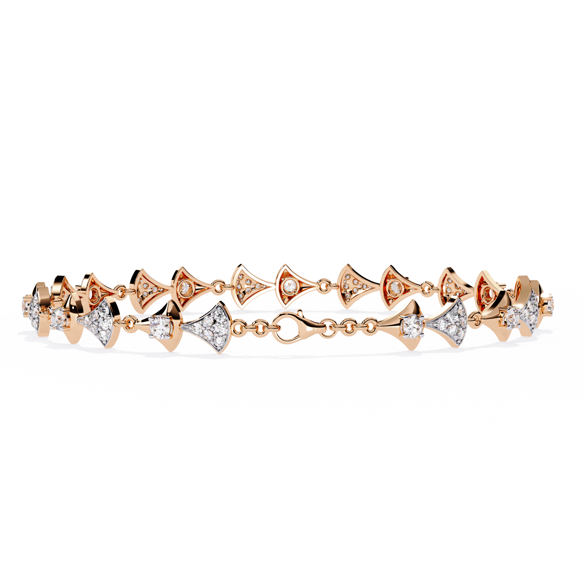 Experience the charm of contemporary elegance with the Gleaming Harmony Gold Diamond Bracelet, a stunning creation that blends modern artistry with timeless sophistication. Crafted from premium yellow gold, this bracelet features a sequence of bow-inspired motifs, each embellished with round-brilliant-cut diamonds that shimmer with every movement. The delicate symmetry and intricate detailing create a refined yet playful look, making it a perfect accessory for both special occasions and everyday grace. Designed to symbolize balance, beauty, and individuality, this bracelet is a radiant expression of luxury and femininity.