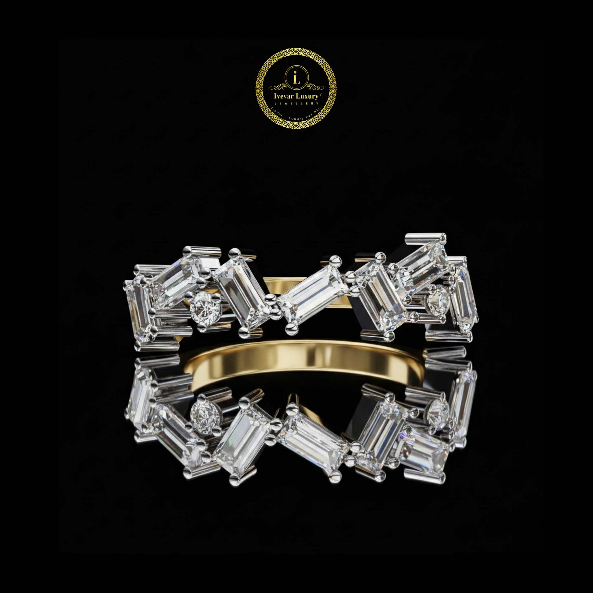 0.56 TCW Lab Created Diamond Marquise Ring Baguette and Round Diamond Band Modern Geometric Eternity Ring Luxury Fine Jewelry