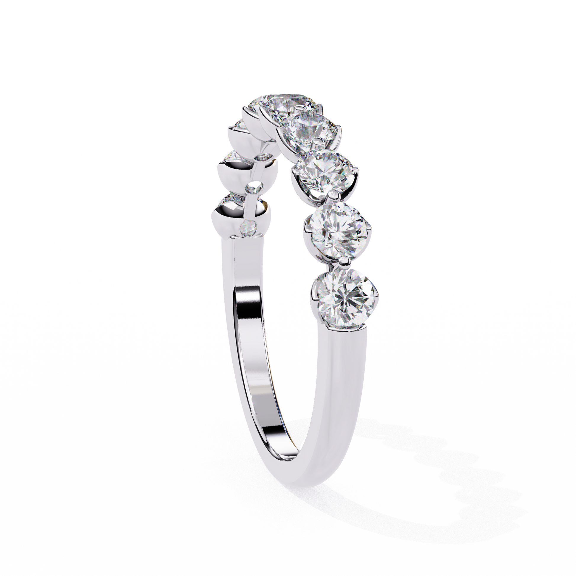 This exquisite seven-stone ring features brilliant round diamonds set in a band, offering a sleek and timeless design. The diamonds are perfectly aligned to create a continuous flow of sparkle, making it a captivating piece for any occasion. Each stone is carefully chosen for its clarity and brilliance, while the setting adds warmth and sophistication. Whether as an anniversary gift, engagement ring, or a classic addition to your jewelry collection, this piece exudes both luxury and elegance.
