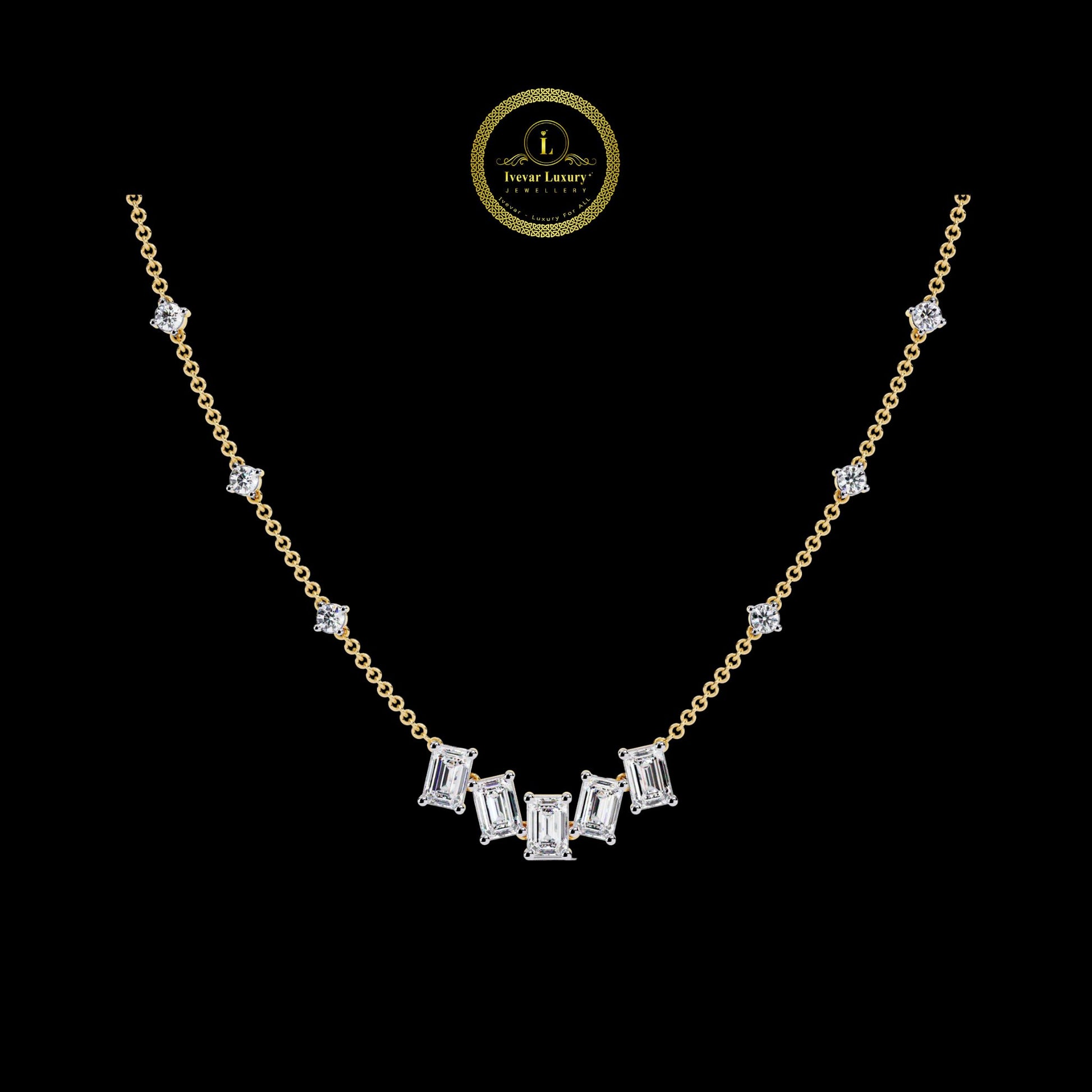 Experience refined sophistication with Ivevar Luxury’s Emerald Diamond Necklace, a breathtaking fusion of timeless elegance and modern artistry. Featuring a graceful arrangement of Emerald-cut and round diamonds, this piece radiates brilliance and charm from every angle. Crafted in luminous gold, the necklace showcases exquisite craftsmanship and attention to detail, offering a perfect harmony of sparkle and simplicity. Ethically made with lab-grown diamonds and premium gold, it symbolizes conscious beauty and everlasting style a true reflection of Ivevar Luxury’s signature elegance.
