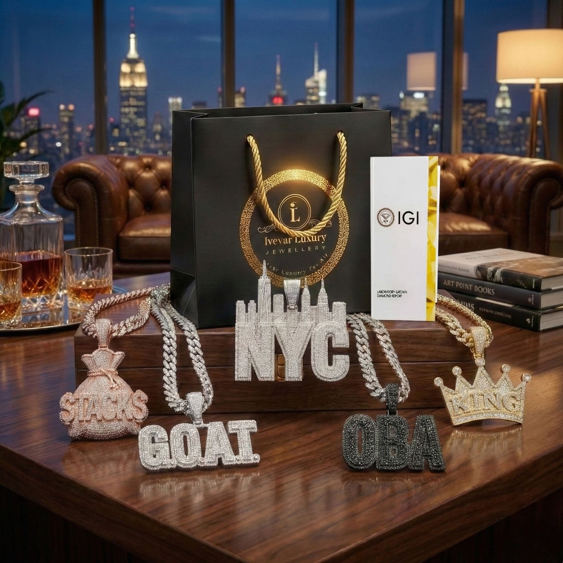 This stunning piece is completely "iced out," meaning its entire surface is covered in a dense pave setting of brilliant-cut, ethically sourced lab-grown diamonds. The design appears to be a stylized combination of two or more letters, most prominently a large 'A' crossed with a 'C' or a similar curved element, forming a unique logo. A diamond-set bail, shaped like a horseshoe or 'U', allows it to be worn on a chain. The piece is crafted in a single white metal tone, providing a bright, uniform sparkle. This pendant is a high-impact, custom statement piece, showcasing personalized luxury and maximalist style popular in modern jewelry.