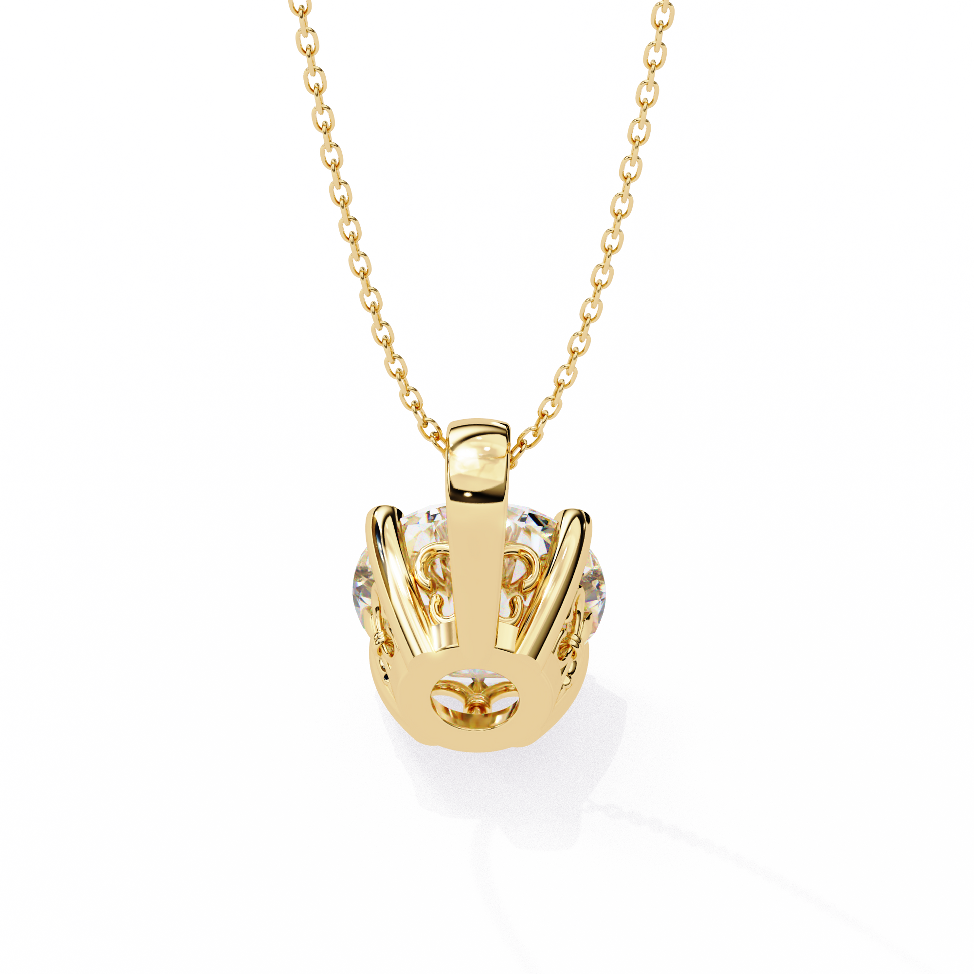 This pendant showcases timeless elegance with its brilliant round-cut Moissanite diamond set in a classic four-prong setting. The dazzling gemstone radiates exceptional brilliance and fire, beautifully complemented by the warm luster of the polished gold. Designed with refined simplicity, this piece exudes sophistication and luxury, making it a versatile accessory perfect for both everyday wear and special occasions by Ivevar. The pendant’s craftsmanship and balance highlight the harmony between modern design and classic allure.
