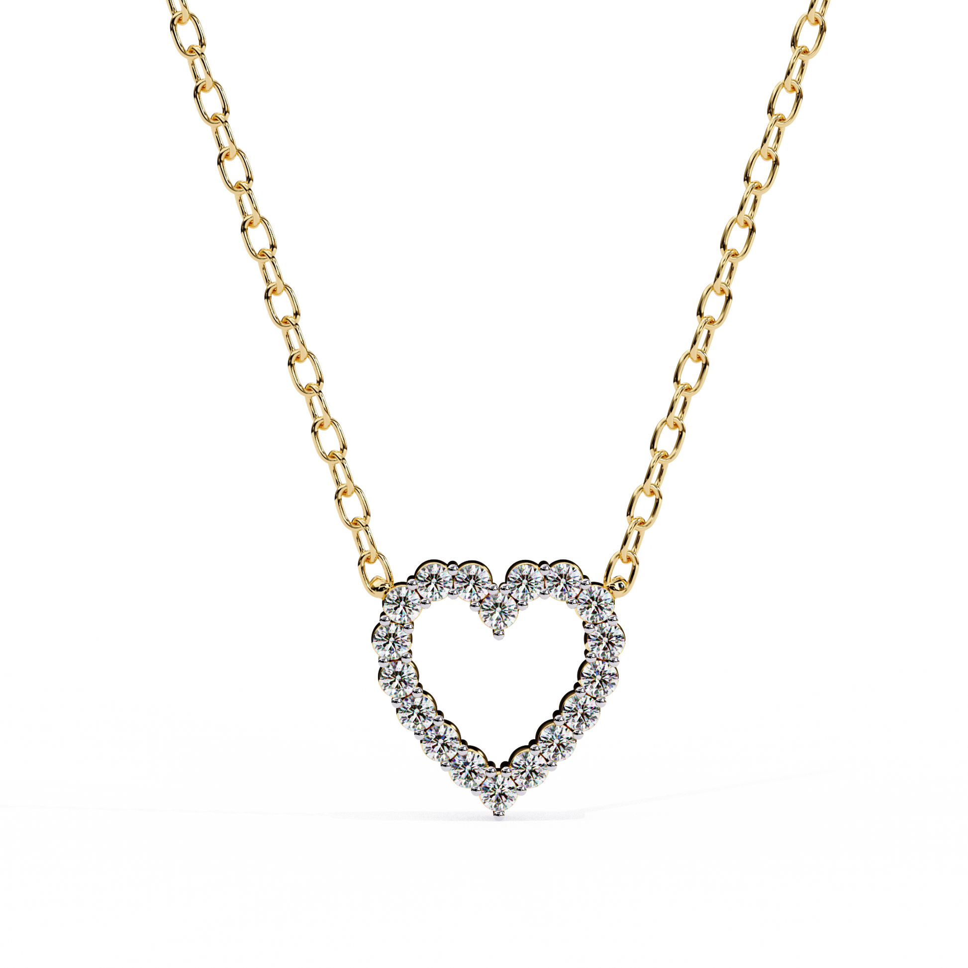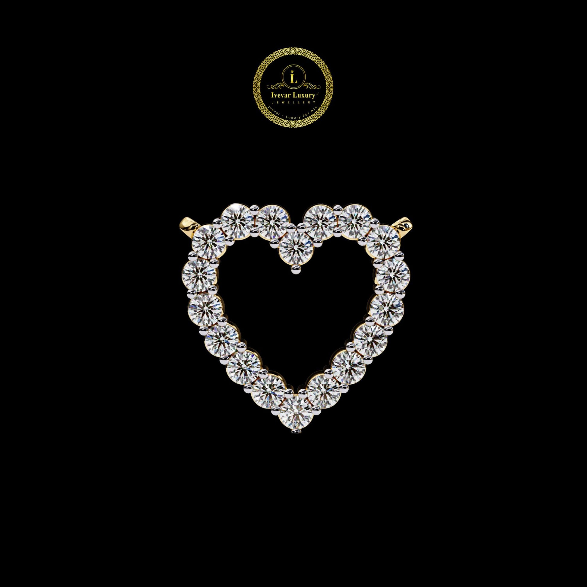 This captivating heart-shaped pendant radiates love and elegance, featuring a flawless arrangement of Brilliant Round Cut Diamonds set in gleaming gold. Each diamond is meticulously placed to form a perfect open-heart silhouette, creating a breathtaking sparkle from every angle. Exuding timeless romance and refined luxury, this pendant beautifully symbolizes affection and sophistication—an exquisite statement piece ideal for celebrating life’s most cherished moments. This is a signature design from Ivevar Luxury Jewelry.