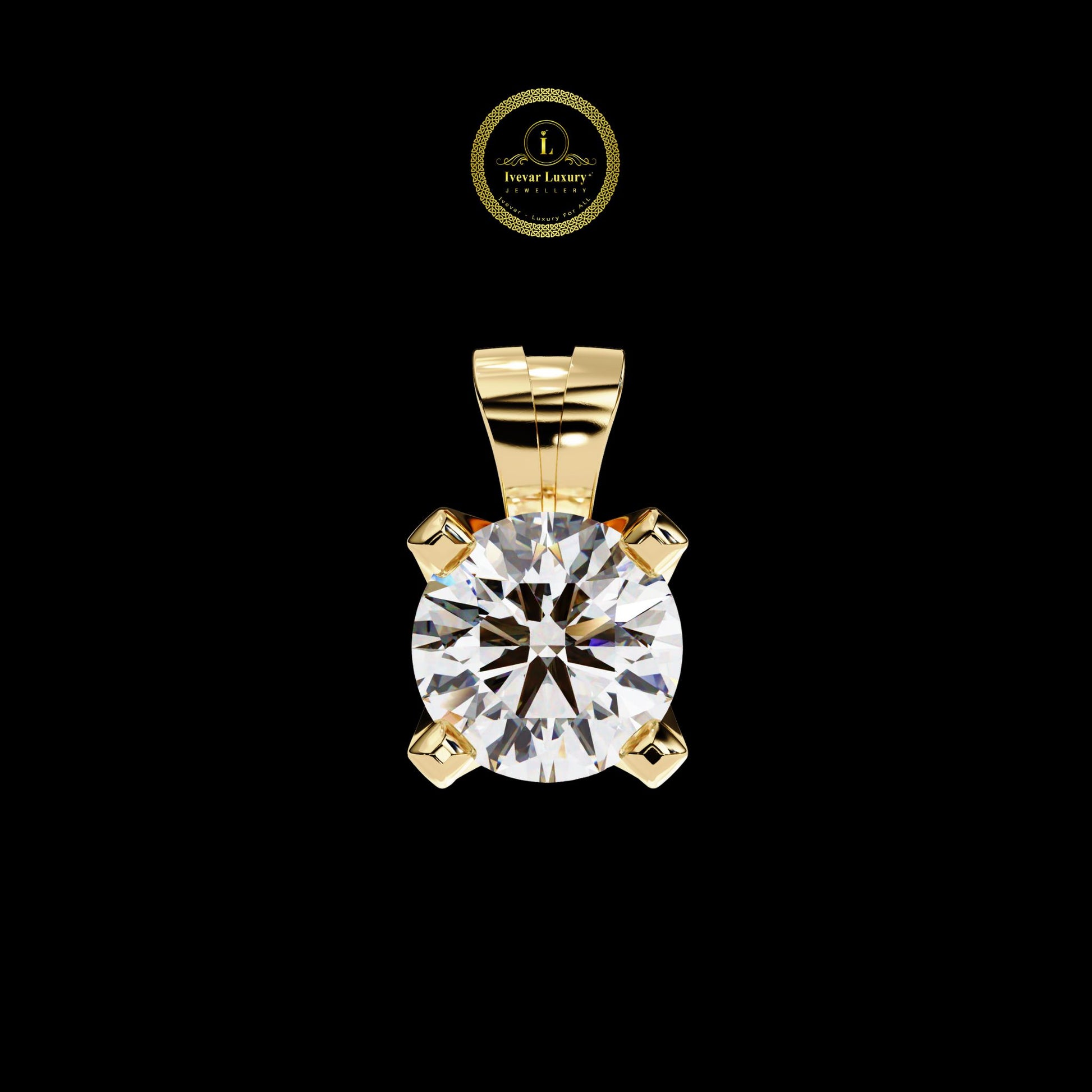 This exquisite pendant radiates sophistication and grace, featuring a Dazzling Round Cut gemstone elegantly cradled in a refined six-prong gold setting. The flawless craftsmanship enhances the stone’s brilliance, allowing every facet to capture and reflect light with mesmerizing intensity. The sleek gold bail adds a contemporary touch to its timeless design, making it a versatile piece that complements both modern and classic styles of Ivevar Luxury. A true embodiment of luxury and elegance, this pendant is designed to illuminate any ensemble with enduring beauty and brilliance.