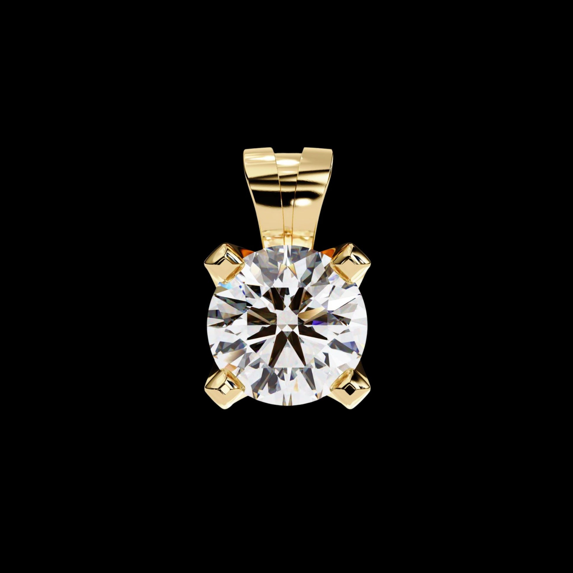 This exquisite pendant radiates sophistication and grace, featuring a Dazzling Round Cut gemstone elegantly cradled in a refined four-prong gold setting. The flawless craftsmanship enhances the stone’s brilliance, allowing every facet to capture and reflect light with mesmerizing intensity. The sleek gold bail adds a contemporary touch to its timeless design, making it a versatile piece that complements both modern and classic styles of Ivevar Luxury. A true embodiment of luxury and elegance, this pendant is designed to illuminate any ensemble with enduring beauty and brilliance.