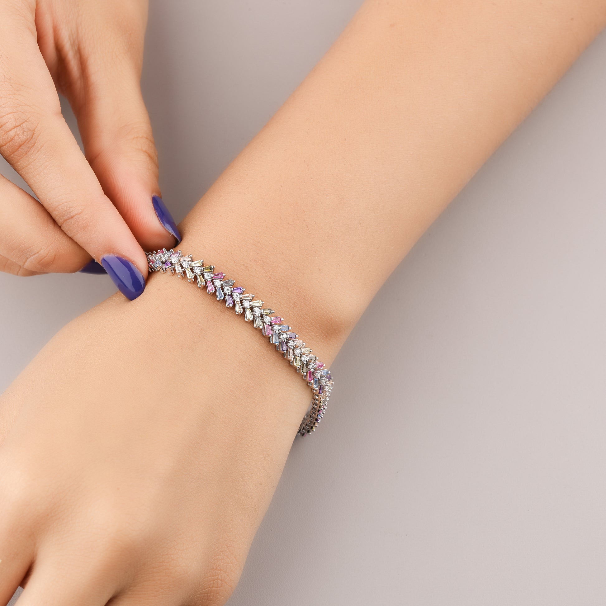 Vibrant Natural Sapphire Bracelet Custom Diamond Detailing By Ivevar