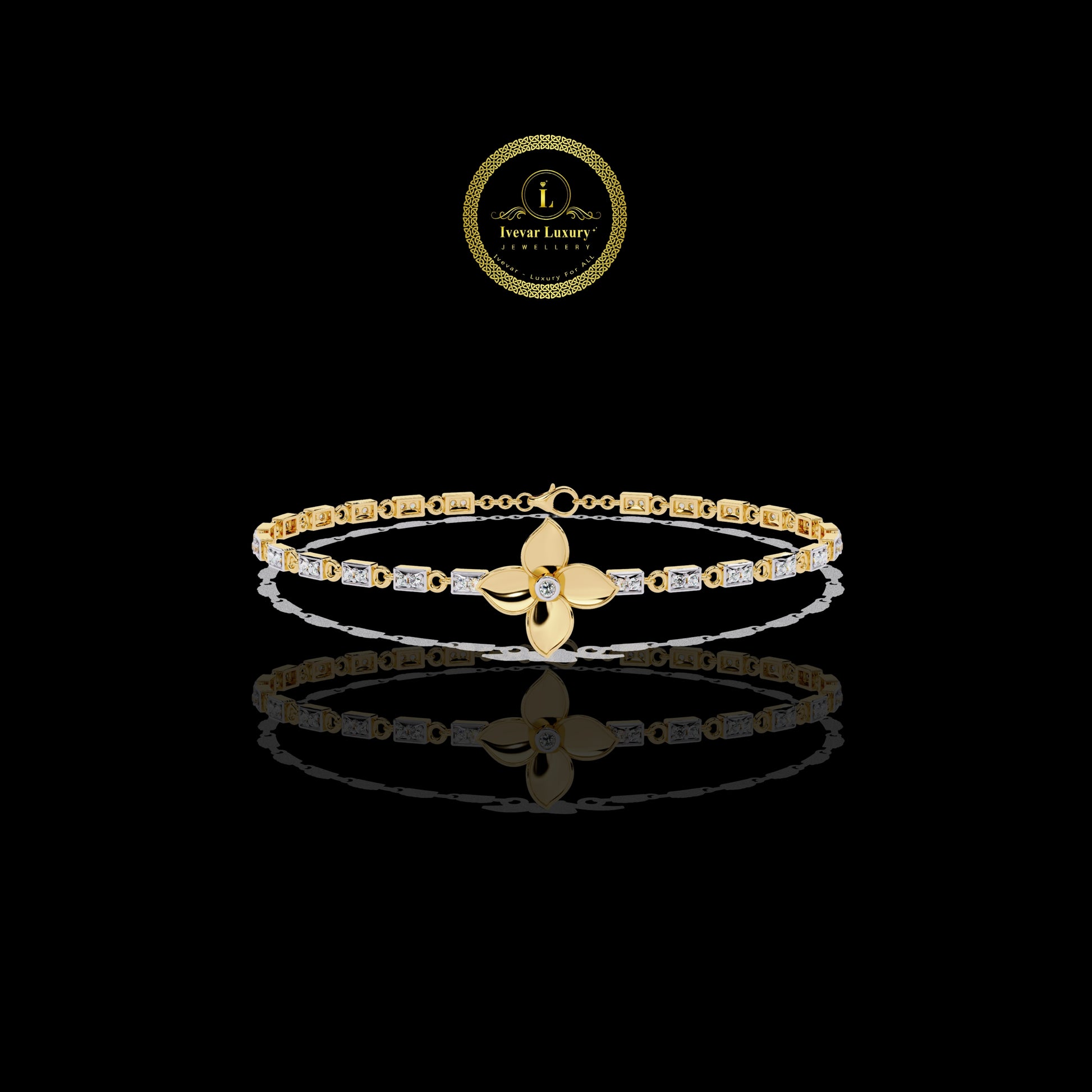 Embrace timeless elegance with this Golden Blossom Diamond Bracelet, a perfect fusion of luxury and sophistication. Crafted from high-quality gold, it features a stunning four-petal flower motif at its center, accented with a brilliant-cut diamond that radiates charm and grace. The bracelet’s band is adorned with sparkling rectangular-cut diamonds, adding a touch of refined brilliance to your wrist. Designed for both everyday wear and special occasions, this piece exudes an aura of modern femininity and classic beauty, making it a must-have addition to any jewelry collection.
