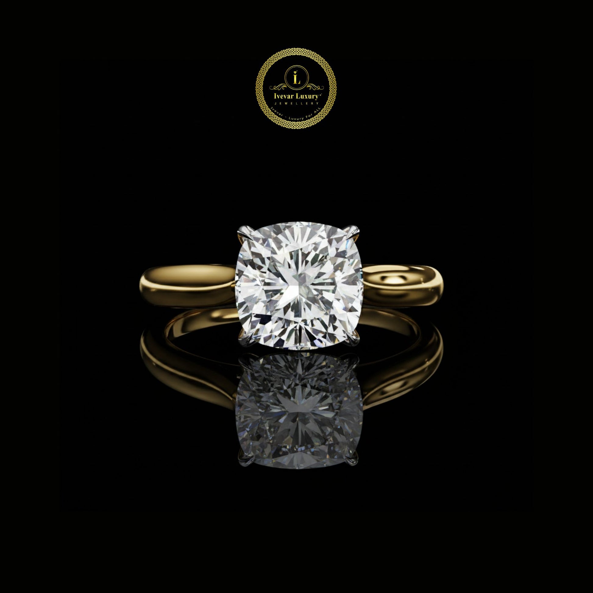 2.65 TCW Radiance Cushion Cut Lab Grown Diamond Solitaire Engagement Ring in Solid Gold Classic Elegance with Modern Sparkle