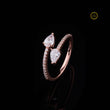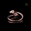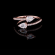This exquisite ring showcases two pear-cut diamonds elegantly facing each other in a modern wrap-around design. Crafted in luxurious rose gold, the band is adorned with a row of round brilliant pavé-set stones that enhance its radiance. The combination of the unique silhouette and the warm rose-gold tone creates a look that is both romantic and contemporary, making it a perfect statement piece for any special occasion.