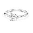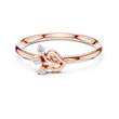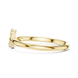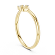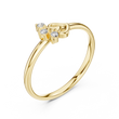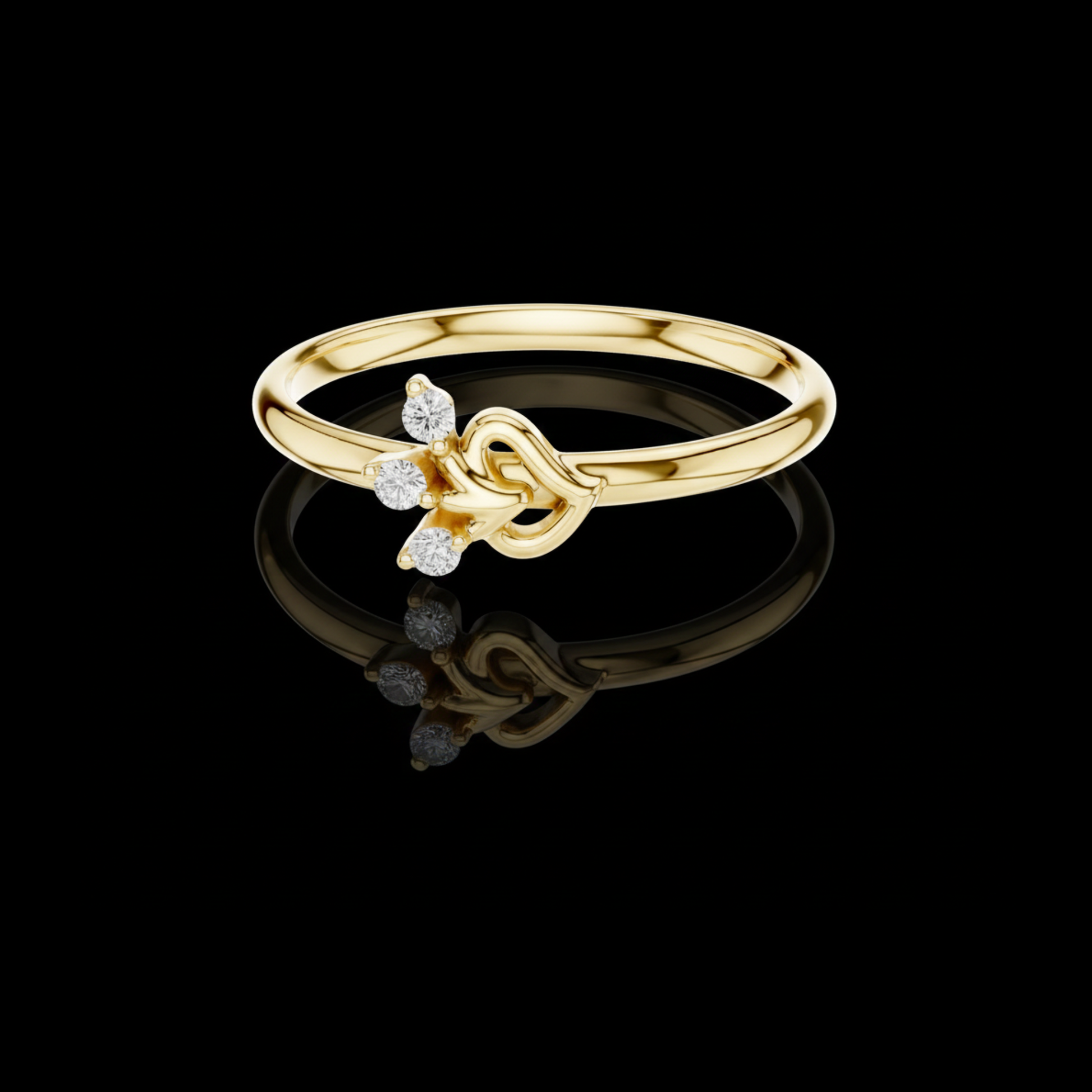 This elegant ring features a delicate gold band that gracefully leads to a charming heart-inspired motif, accented by three sparkling round diamonds arranged like a blooming cluster. The combination of the polished gold and the brilliant stones creates a timeless yet romantic aesthetic, making it perfect for celebrating love, marking a special moment, or adding a touch of refined beauty to everyday wear.