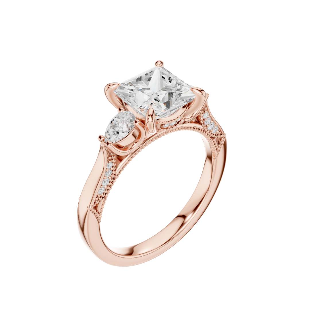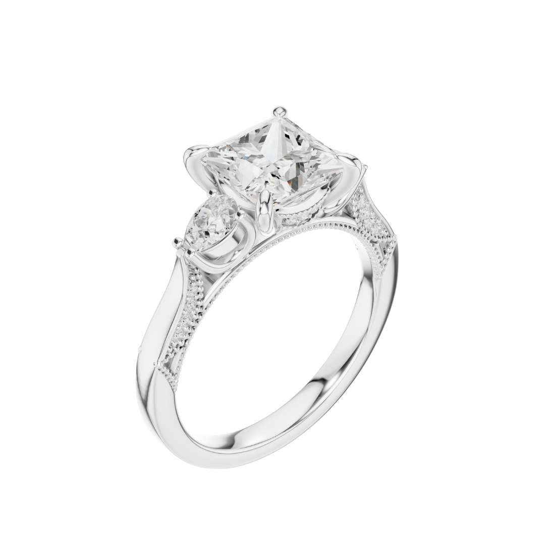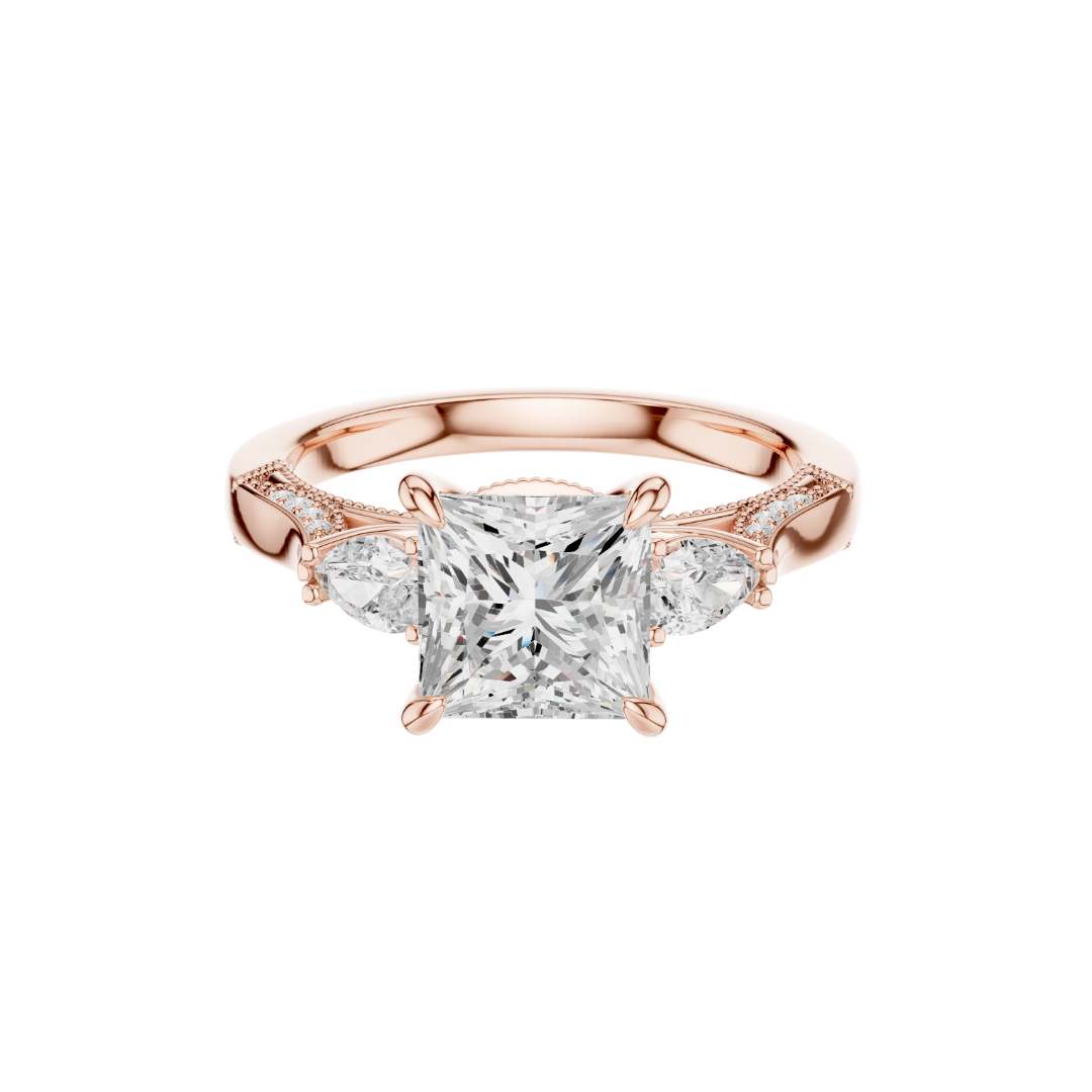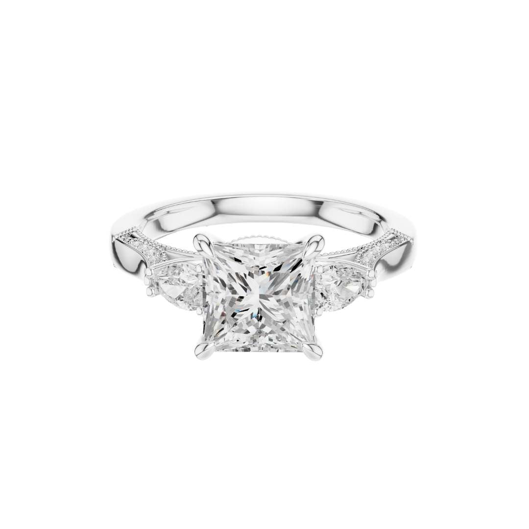 1.80 CT Charming Princess Cut Three Stone Lab Grown Diamond Ring with Pear Side Stones