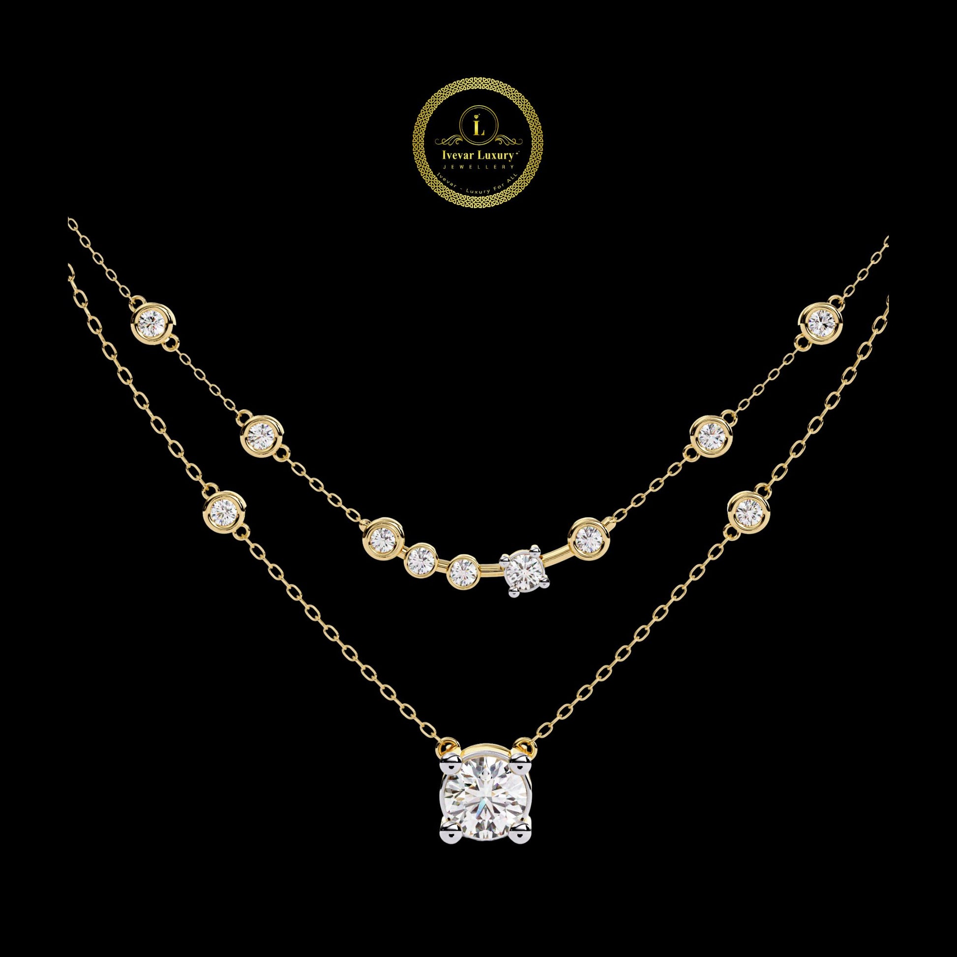 Add effortless elegance to your look with this stunning layered gold necklace featuring two delicate chains adorned with sparkling bezel-set diamonds and a brilliant solitaire pendant. The two-tier design creates a chic, modern layered effect that’s perfect for both everyday wear and special occasions. Handcrafted with fine gold and high-quality stones, this necklace makes a timeless gift for someone special or a luxurious treat for yourself. Beautifully versatile, it pairs effortlessly with casual or formal outfits, ivevar luxury adding a touch of sophistication and sparkle to any style.