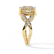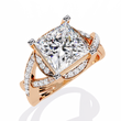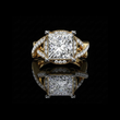 This exquisite ring showcases a stunning princess-cut center stone set in an elegant gold band. The design features a dazzling halo of round brilliant diamonds that frame the centerpiece, enhancing its brilliance and fire. A sophisticated split-shank band—adorned with additional pave diamonds—adds depth, dimension, and luxurious sparkle from every angle. Perfect for engagements, anniversaries, or special occasions, this piece blends timeless elegance with modern artistry, making it a standout statement of refined luxury.
