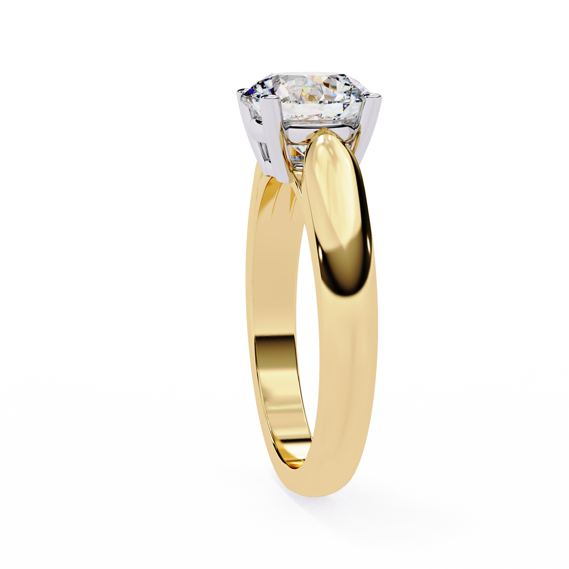This stunning engagement ring features a brilliant round-cut diamond, set in a timeless band. The diamond's exceptional clarity and brilliance are showcased by the sleek, minimalist design, making it a perfect symbol of love and commitment. The solitaire setting elevates the beauty of the diamond, while the high-quality band offers durability and elegance. Ideal for those seeking a classic yet sophisticated piece for a proposal or special occasion. The ring's design also highlights the exceptional craftsmanship and luxury that accompanies this piece.