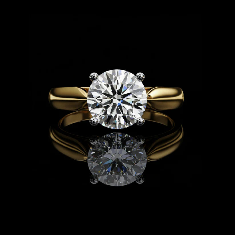 This stunning engagement ring features a brilliant round-cut diamond, set in a timeless band. The diamond's exceptional clarity and brilliance are showcased by the sleek, minimalist design, making it a perfect symbol of love and commitment. The solitaire setting elevates the beauty of the diamond, while the high-quality band offers durability and elegance. Ideal for those seeking a classic yet sophisticated piece for a proposal or special occasion. The ring's design also highlights the exceptional craftsmanship and luxury that accompanies this piece.