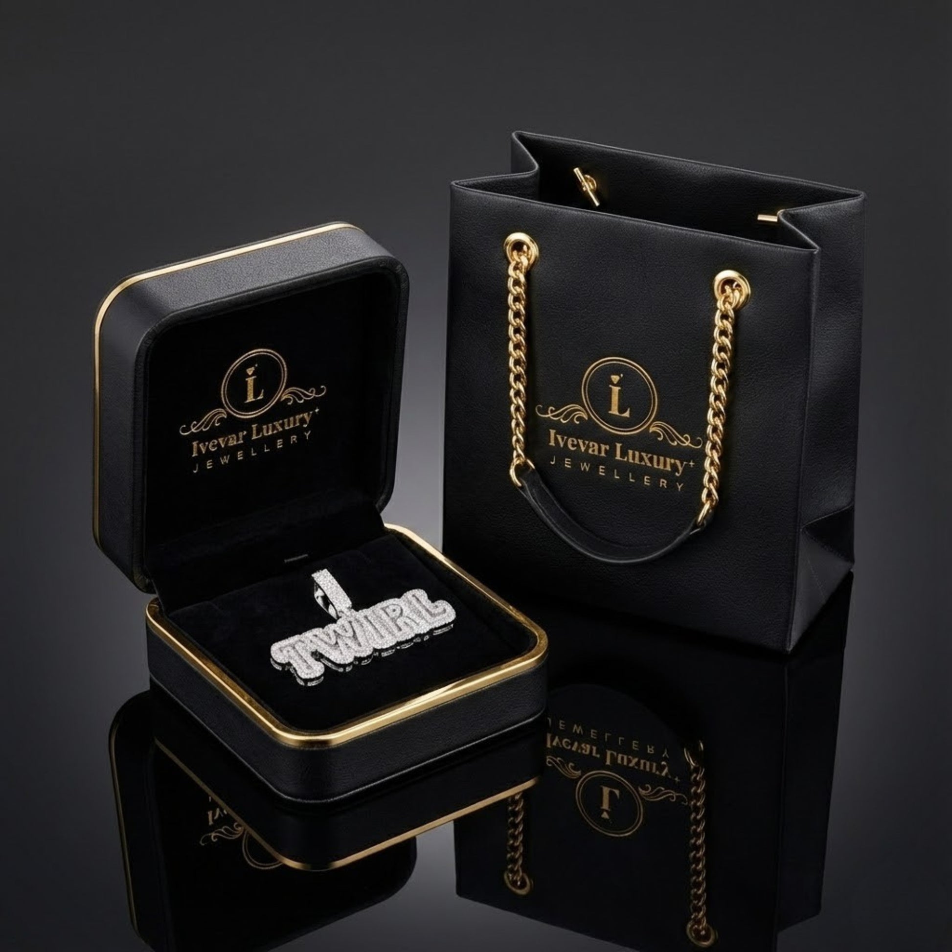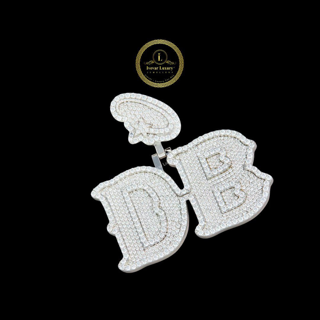This is a large, personalized initial pendant featuring the letters "D" and "B"—presumably for an individual's name or brand—made by Ivevar Luxury Jewelers, as indicated by the logo.