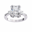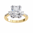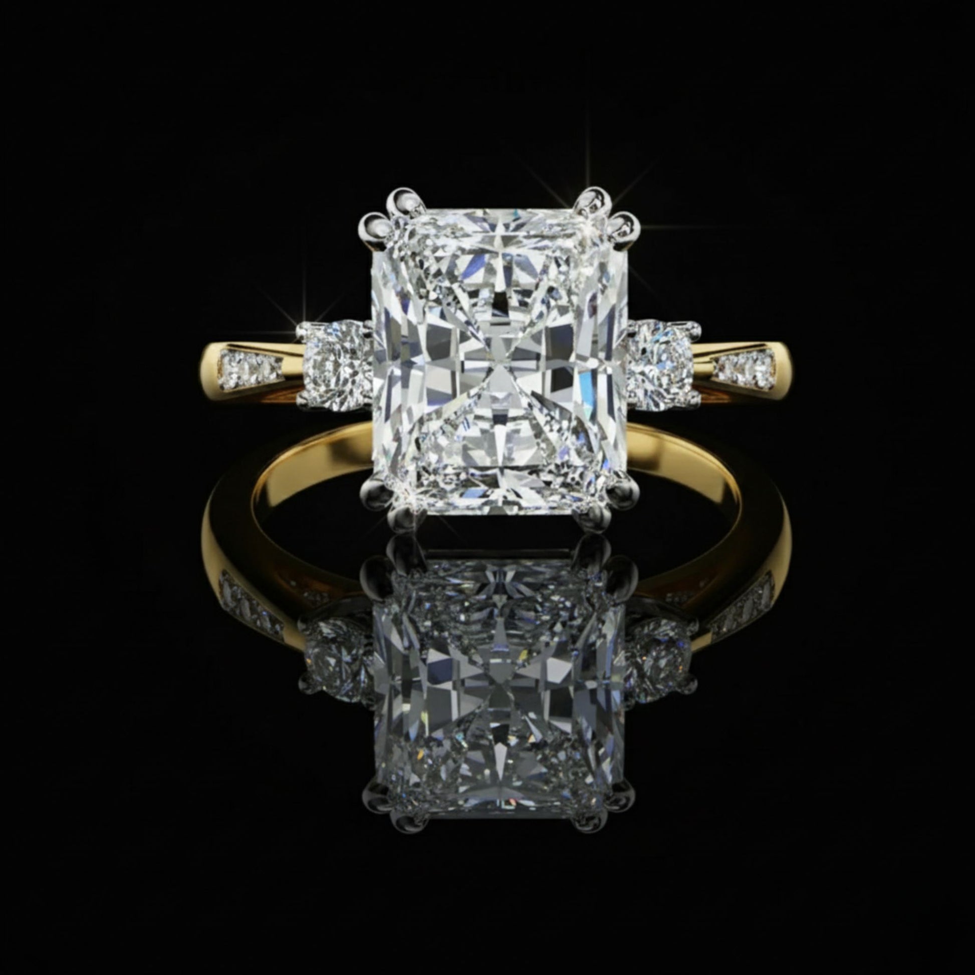 This elegant engagement ring features a dazzling Radiant cut diamond at the center, showcasing a sophisticated blend. The center stone is complemented by two round side diamonds, enhancing its radiant appeal. With its timeless design and exceptional brilliance, this piece is the perfect symbol of luxury and commitment. Ideal for those seeking a ring that combines both classic elegance and modern beauty by Ivevar.