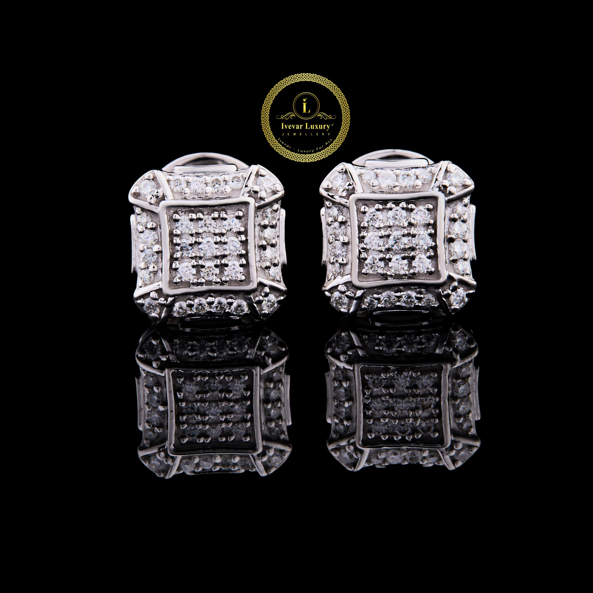 Cluster Princess Cut Diamond Stud Earrings Pave Square Design by Ivevar Luxury