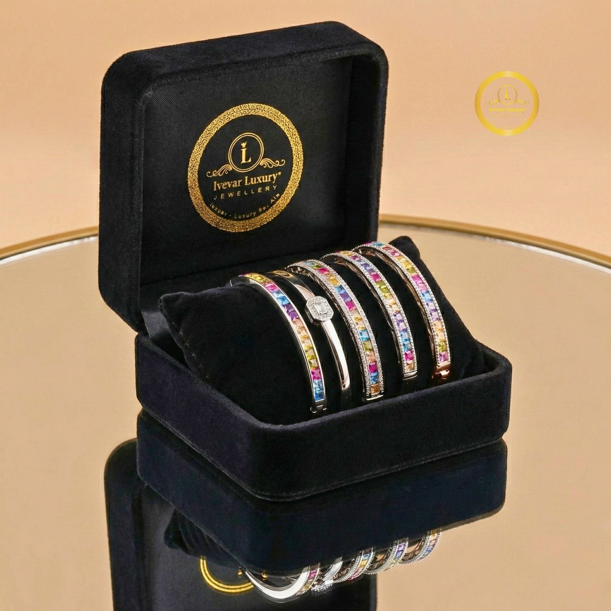 This image captures a close-up view of a Silver-Tone Rainbow Princess Bangle Bracelet being fastened around a wrist. The bracelet features a single, slender band set with an alternating pattern of colored and clear stones. The central section consists of horizontally set princess-cut stones in a vibrant, continuous "natural rainbow" sequence (including pink, yellow, green, blue, and purple). Framing the colorful baguettes are two outer rows of small, round, pave-set clear stones (likely white diamonds or cubic zirconia) that run along the edges of the bangle, adding significant sparkle. The overall effect is a chic, modern design that is perfect for adding a luxurious splash of color.