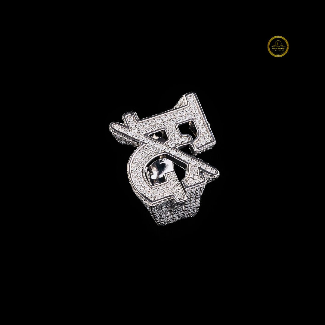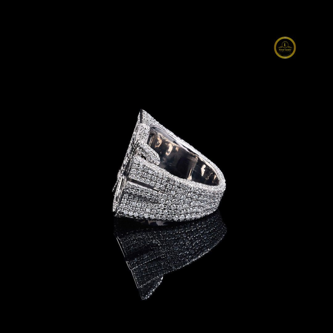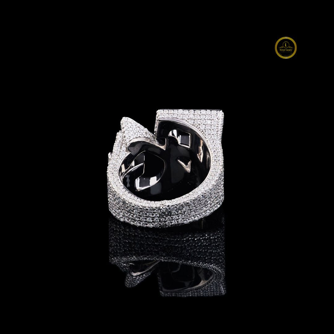Chosen for their superior fire and refractive index, these Lab Grown provide a diamond-like luster that dominates the visual profile. The setting is likely high-quality 925 Sterling Silver or white gold, finished with a high-polish reflection. Combining street-culture aesthetics with luxury craftsmanship, this ring is a perfect choice for those seeking premium, custom-branded jewelry with undeniable shelf presence.