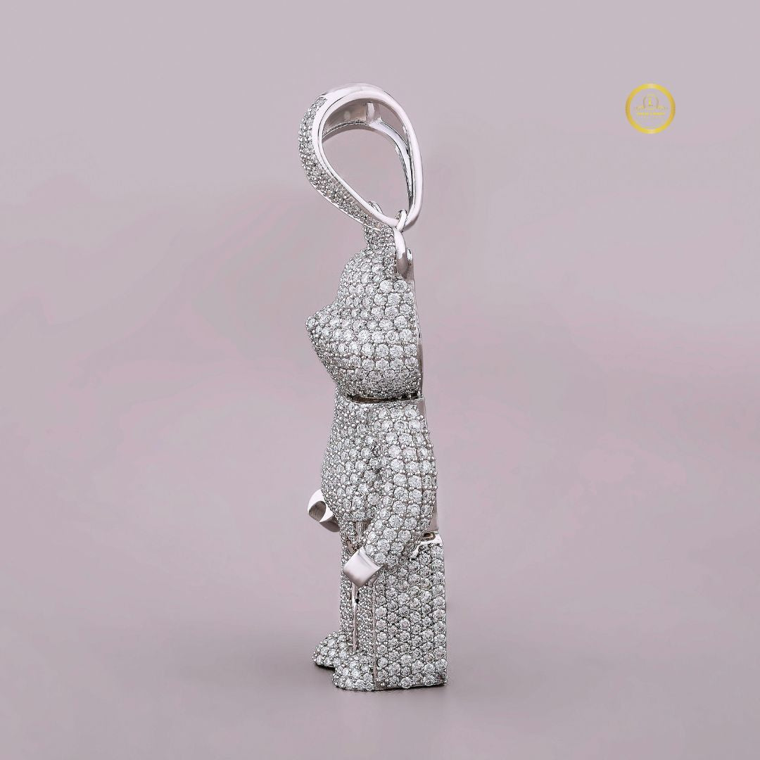 This is a stylish and playful custom pendant designed in the shape of a Bearbrick or similar articulated vinyl toy figure. The entire piece is rendered in a white metal (likely white gold or silver) and is fully "iced out," meaning it is completely covered in a pavé setting of lab-grown diamonds.