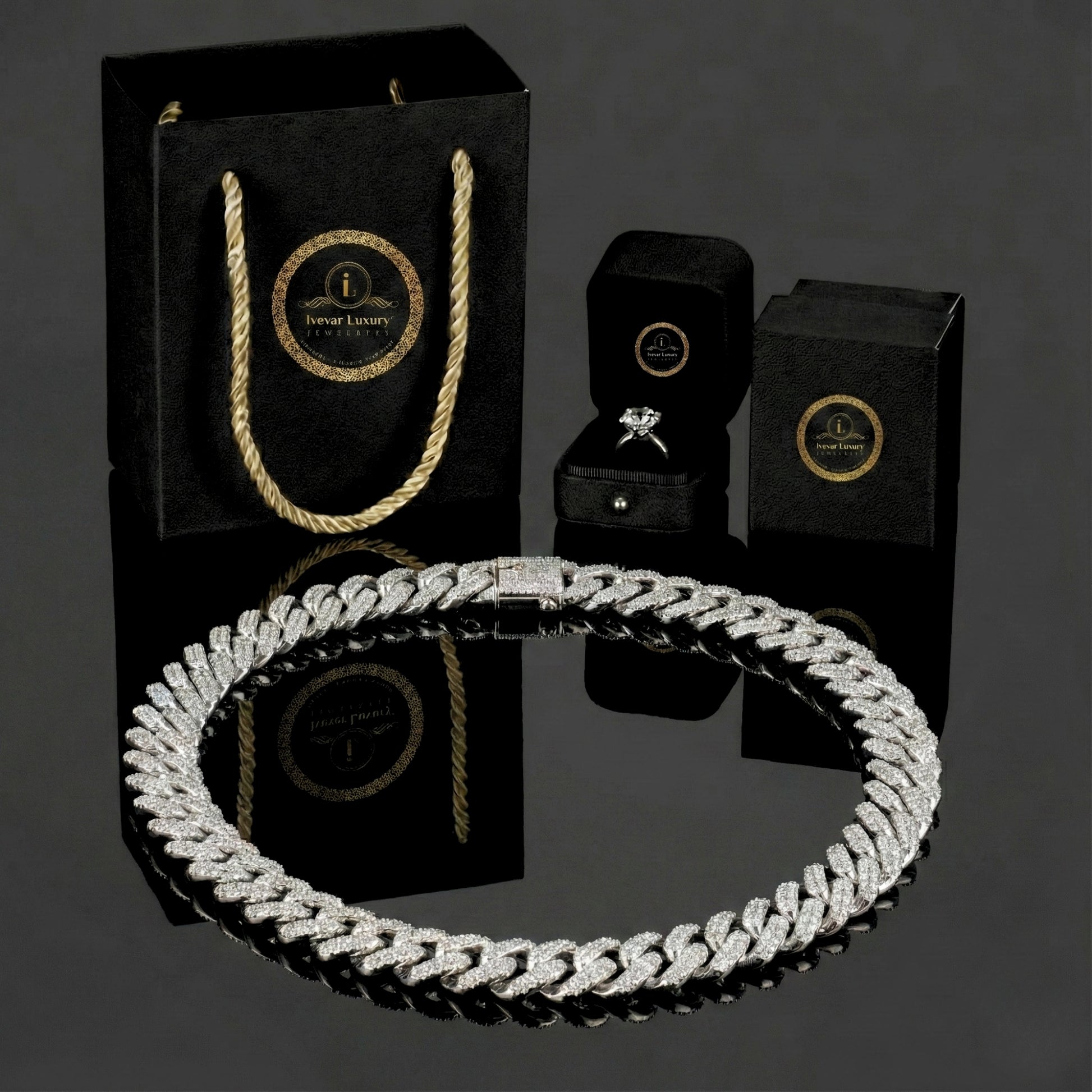 Moissanite is a lab-created gemstone chosen for its exceptional fire and brilliance, which often exceeds that of diamond due to its higher refractive index . The chain is a high-impact, luxurious statement piece, providing the dazzling look of a full-diamond chain at a more accessible price point . Its design, often associated with streetwear and luxury culture, includes a secure, paved clasp . The chain pictured in rose gold is branded with Iveaar Luxury Jewellery.