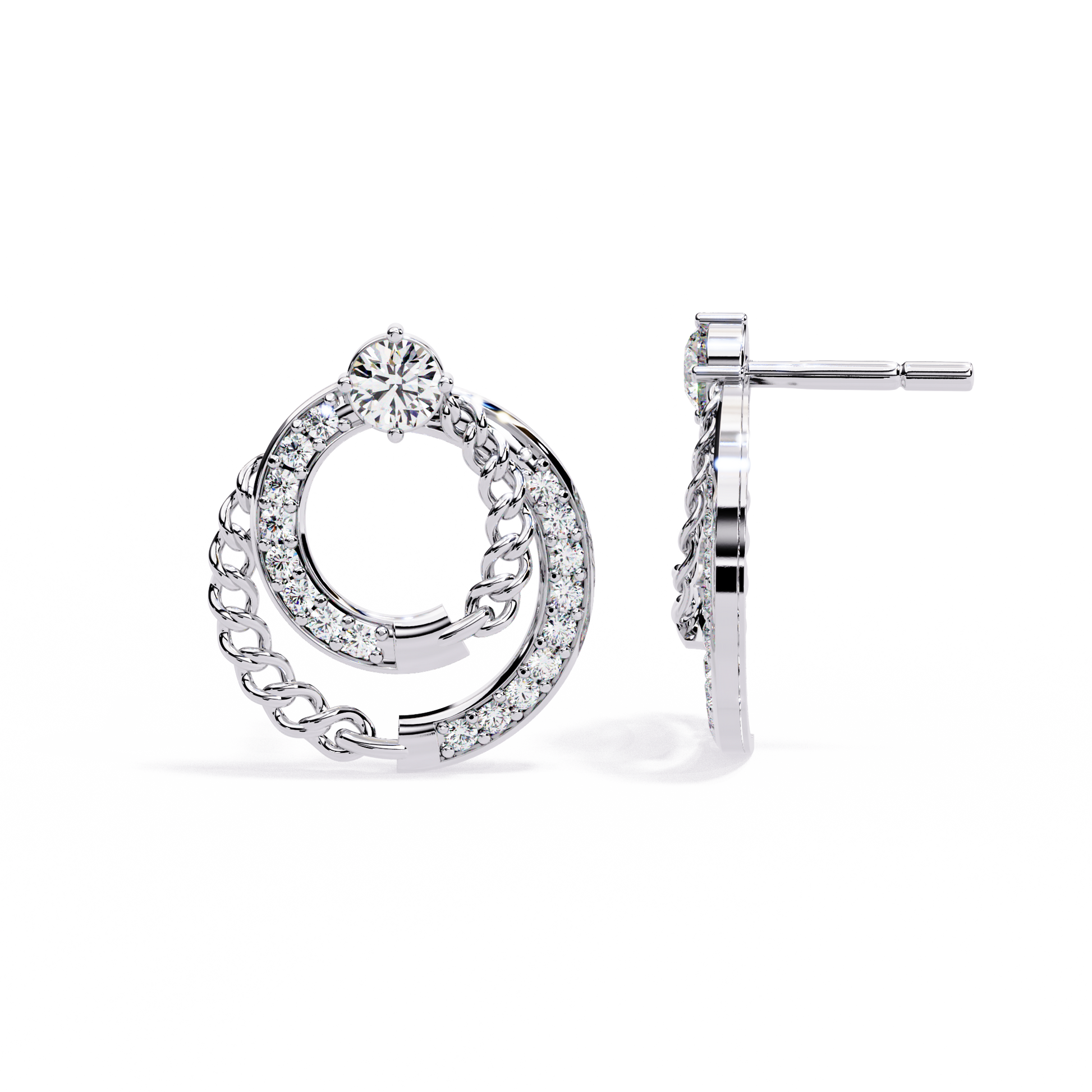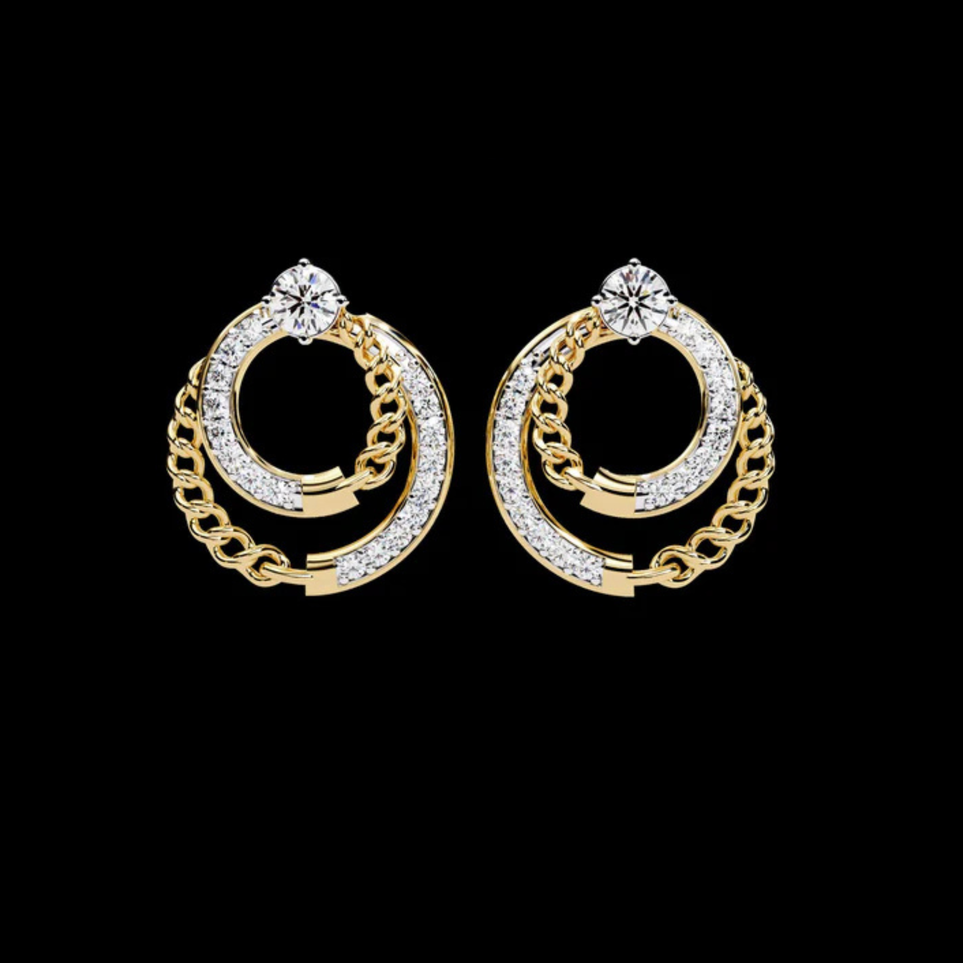 The Diamond Chain Loop Earrings by Ivevar Luxury Jewels redefine modern glamour with a bold yet refined aesthetic. Handcrafted in luminous gold, each earring features a contemporary circular silhouette adorned with pavé-set brilliant diamonds and a delicate gold chain accent, creating a perfect balance of sparkle, sophistication, and edge. Topped with a round-cut diamond centerpiece, these earrings embody confidence, individuality, and timeless luxury, elevating any look with effortless modern elegance.