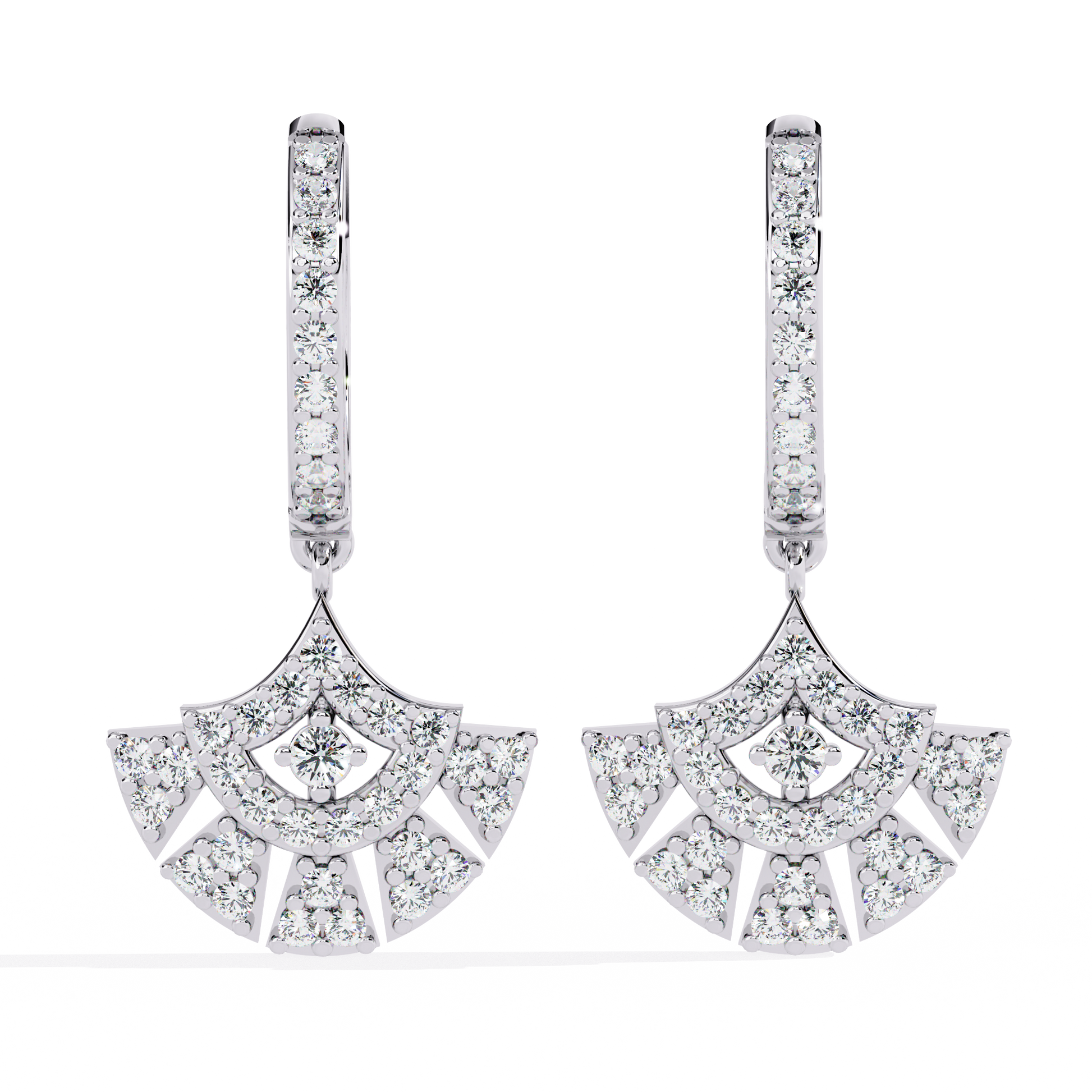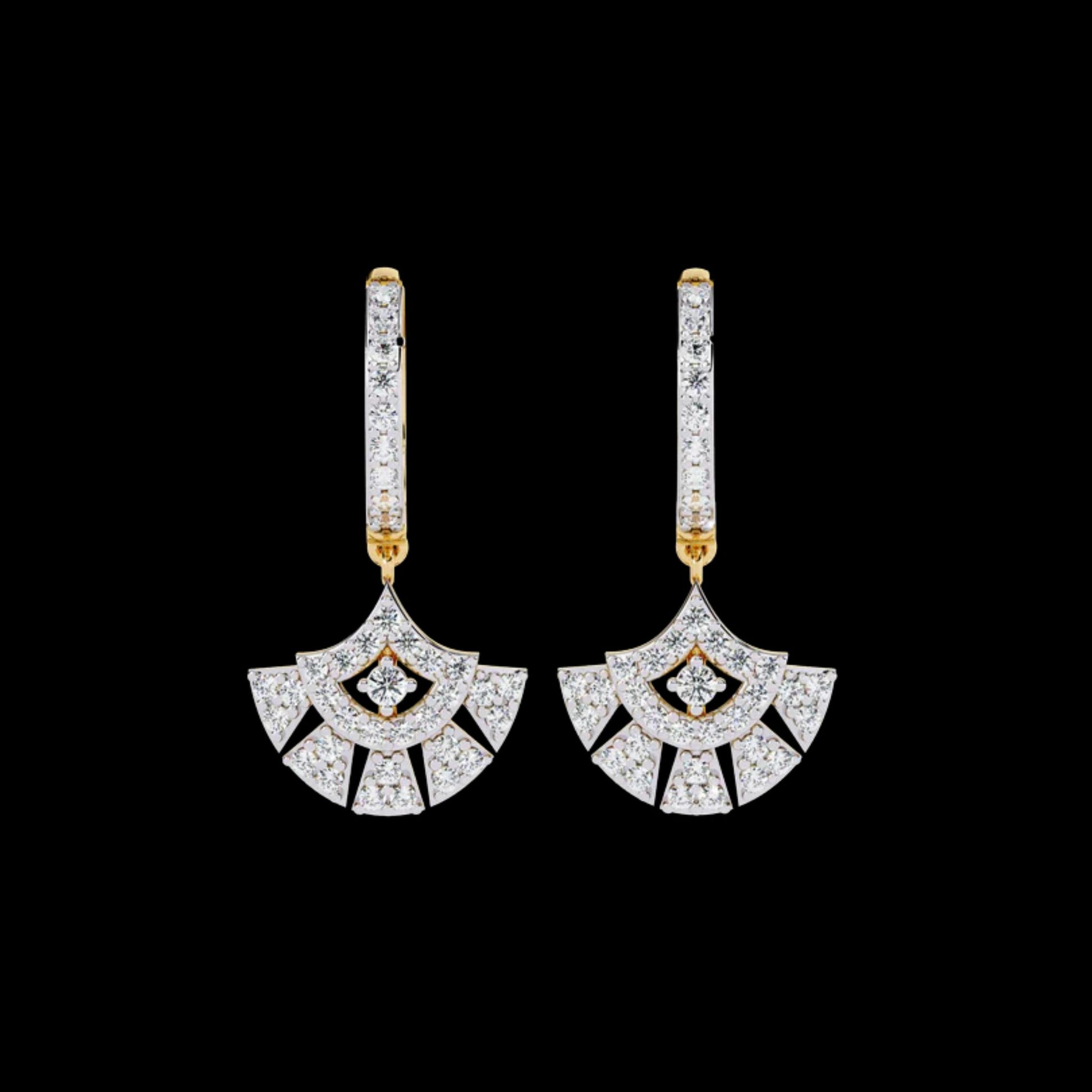 These Art Deco Fan Moissanite Diamond Drop Earrings by Ivevar Luxury Jewels exude timeless glamour with a modern twist. Meticulously crafted in radiant gold, each earring features a bold fan-shaped design embellished with brilliant round cut moissanite diamonds, creating a stunning mosaic of sparkle and symmetry. The intricate geometric pattern draws inspiration from vintage Art Deco architecture, offering a perfect fusion of elegance and artistry. Designed for those who appreciate statement-making sophistication, these earrings embody Ivevar’s commitment to ethical luxury, fine craftsmanship, and enduring beauty — an exquisite choice for both celebratory occasions and refined everyday style.