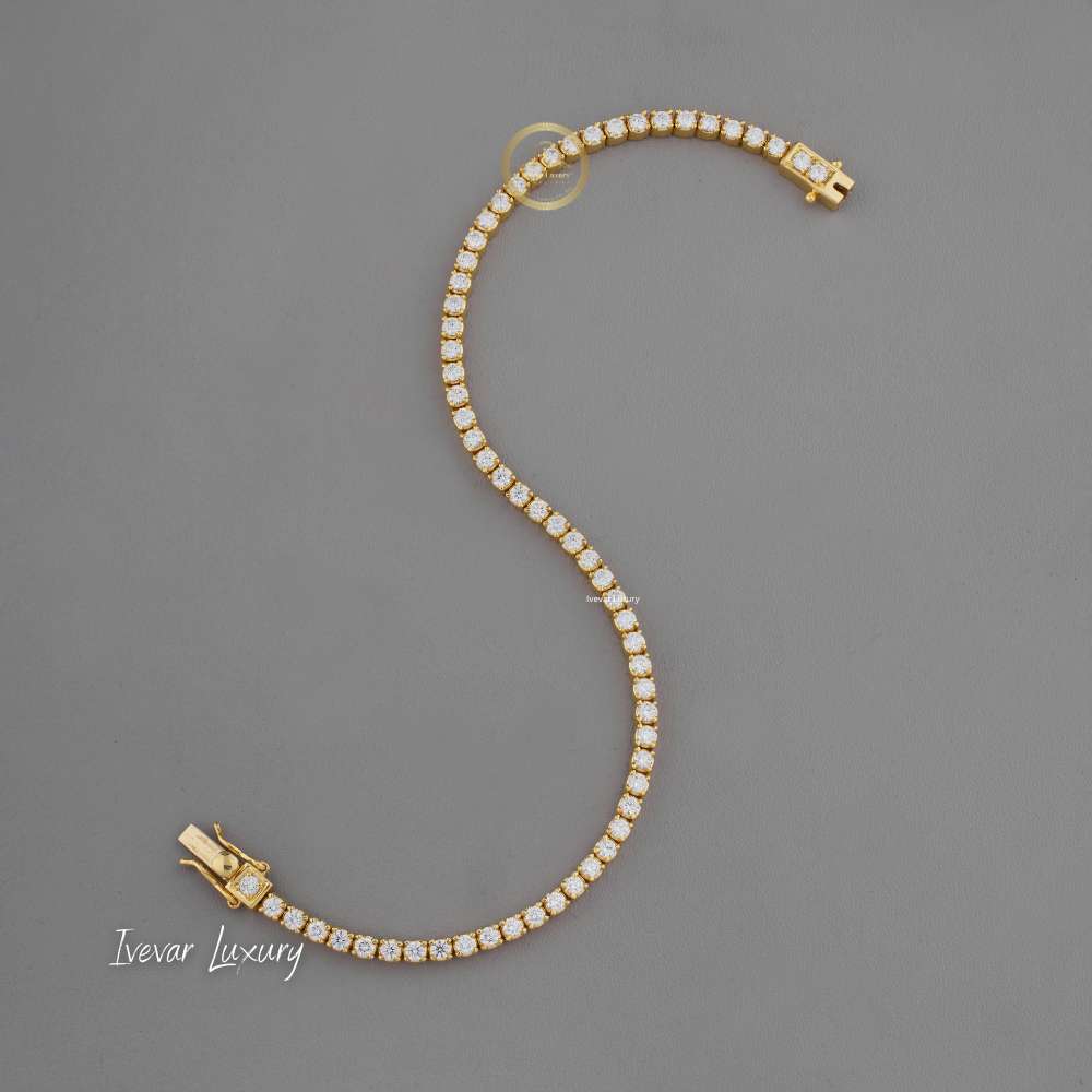 The image displays a classic lab-grown diamond tennis bracelet from Ivevar Luxury.