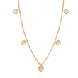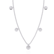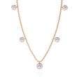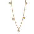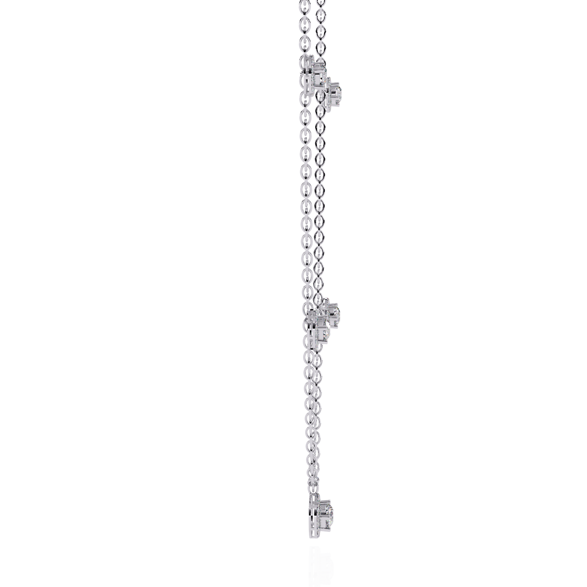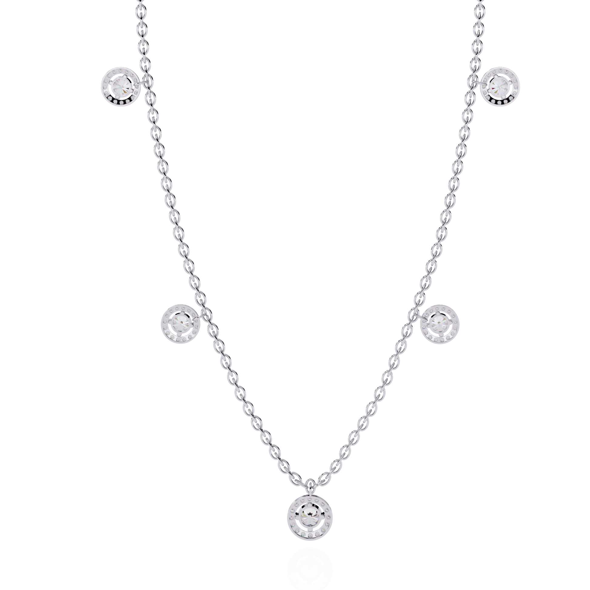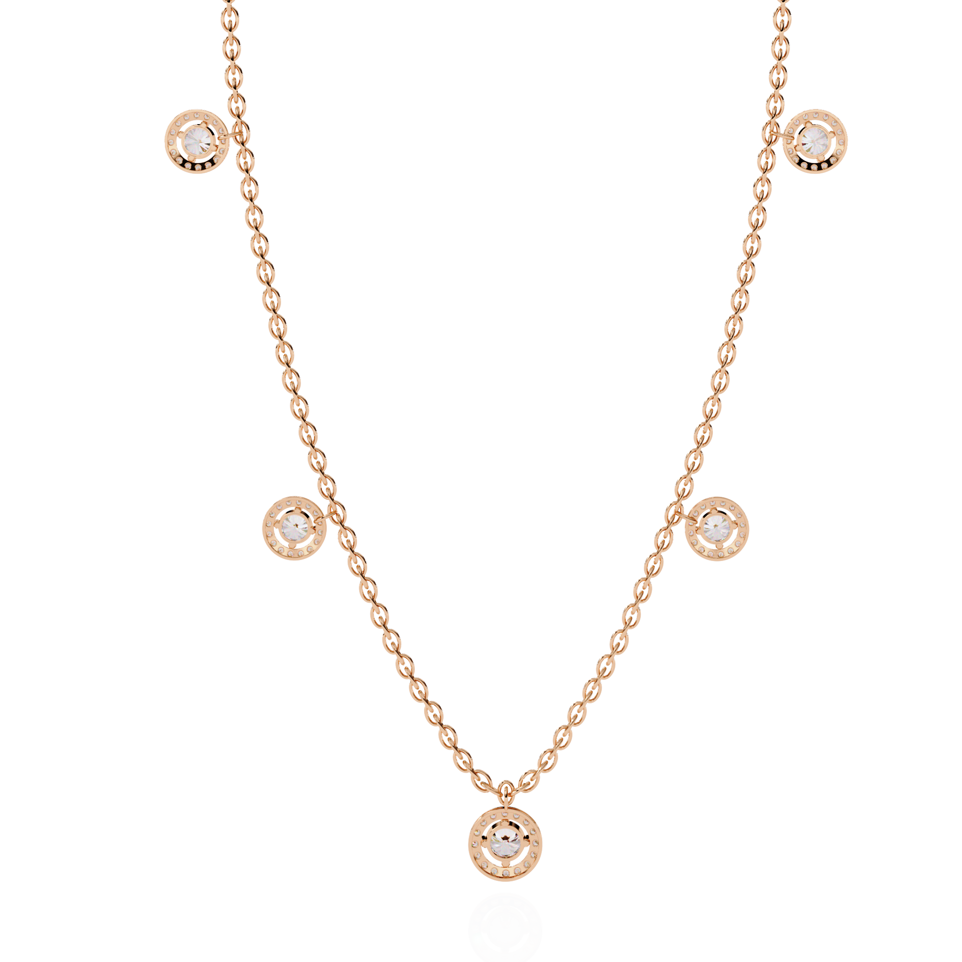 This elegant necklace features a delicate gold chain adorned with evenly spaced Round Cut Diamond pendants, each encircled by a halo of smaller sparkling stones for added brilliance. The symmetrical arrangement of the diamonds creates a refined, balanced aesthetic that exudes timeless luxury. Perfect for both everyday sophistication and special occasions, this piece seamlessly combines classic design with modern elegance, highlighting the craftsmanship and opulence of fine jewelry by Ivevar.