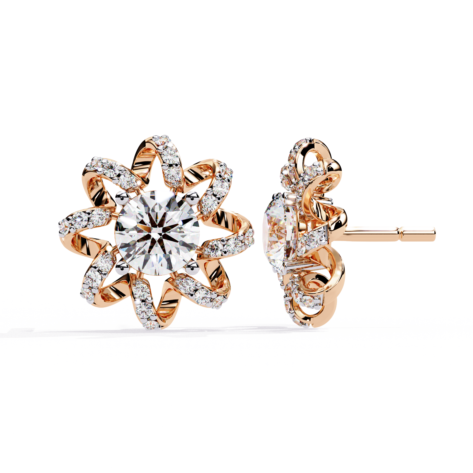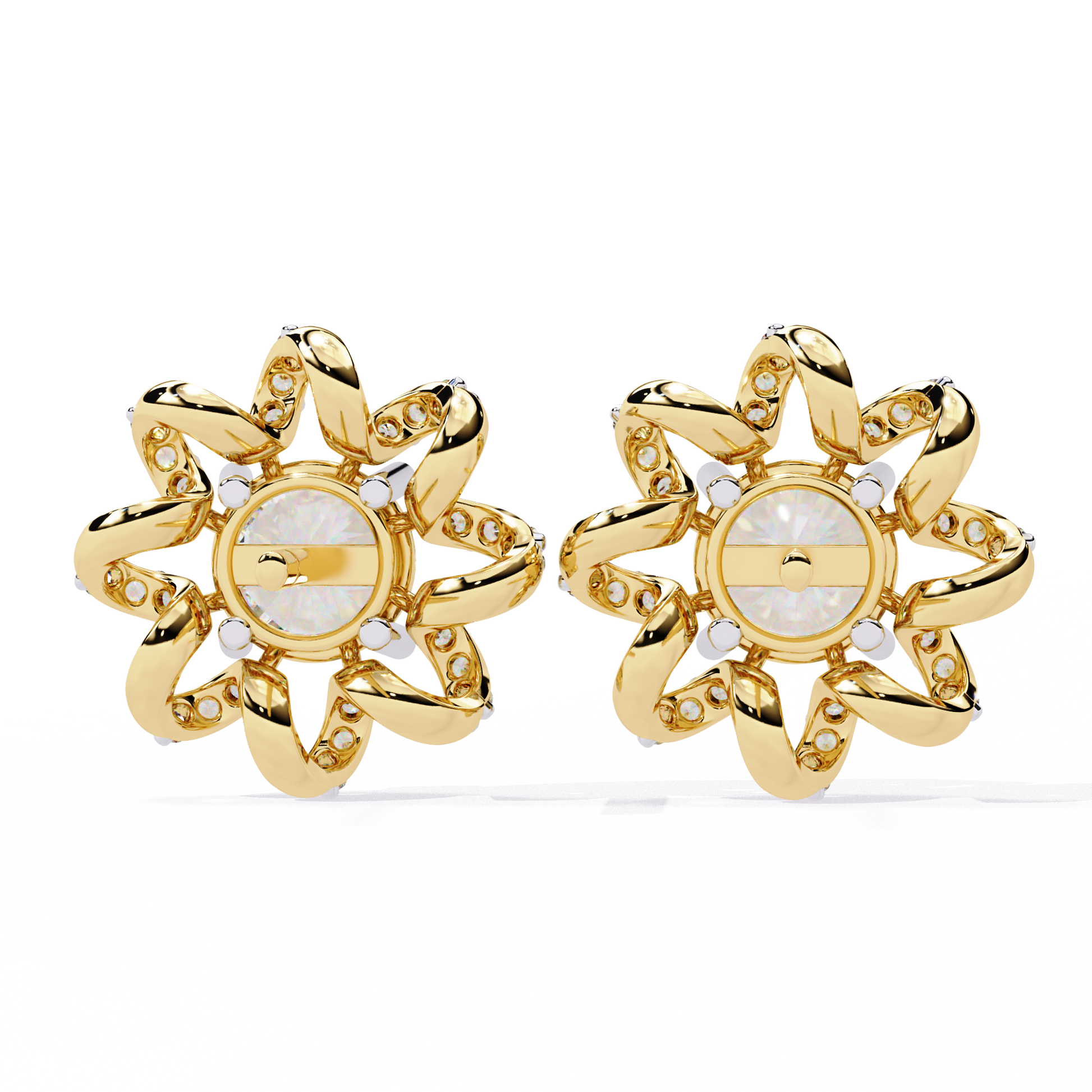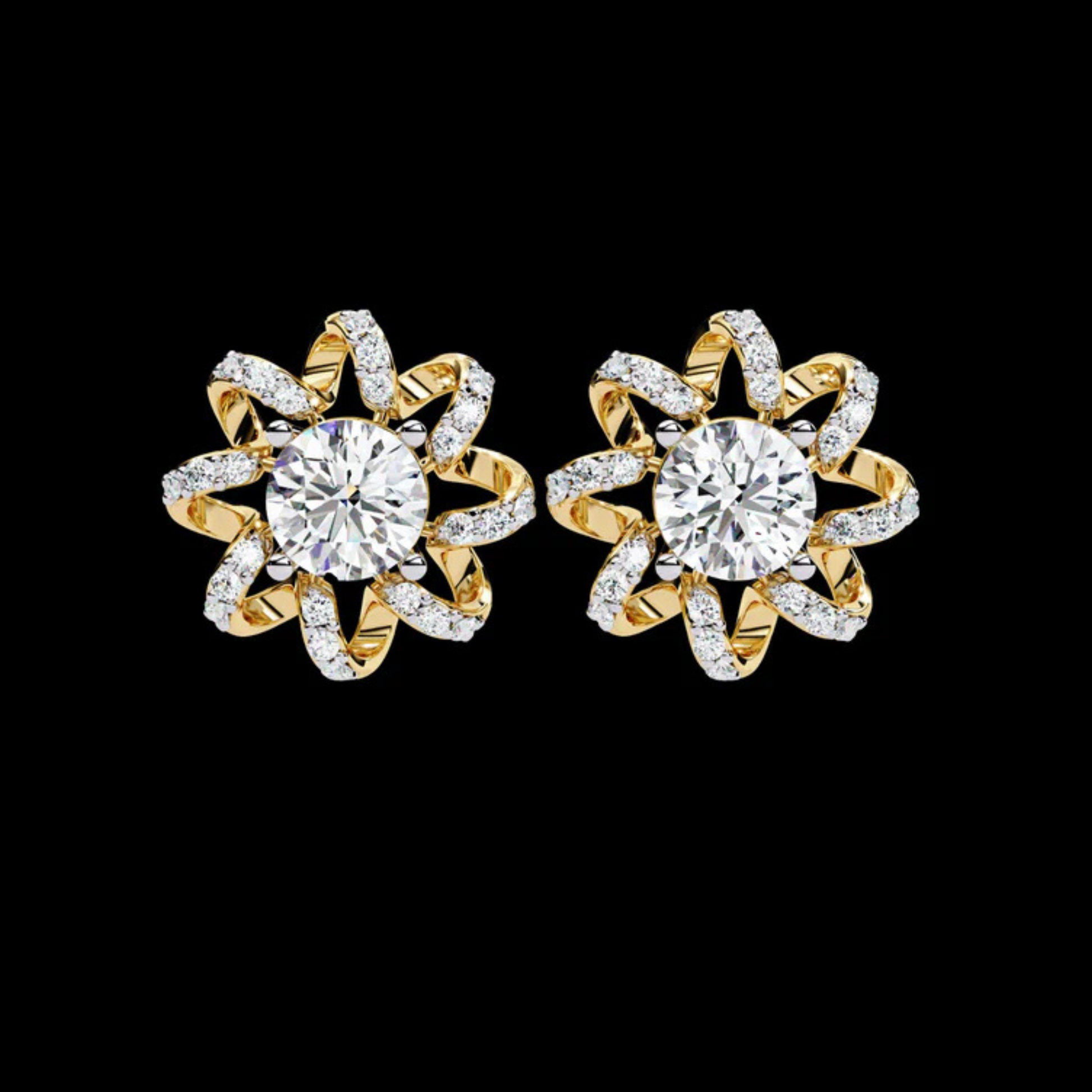 The Radiant Bloom Diamond Stud Earrings by Ivevar Luxury Jewels capture the essence of eternal elegance and luminous beauty. Crafted in brilliant yellow gold, each earring unfolds like a sculpted floral masterpiece, where interwoven diamond-studded loops embrace a magnificent round-cut centerpiece. The intricate petal motif radiates timeless charm and modern sophistication, creating a captivating play of light with every movement. A symbol of grace, strength, and refined femininity, these earrings are the perfect embodiment of luxury reimagined through artistry and brilliance.