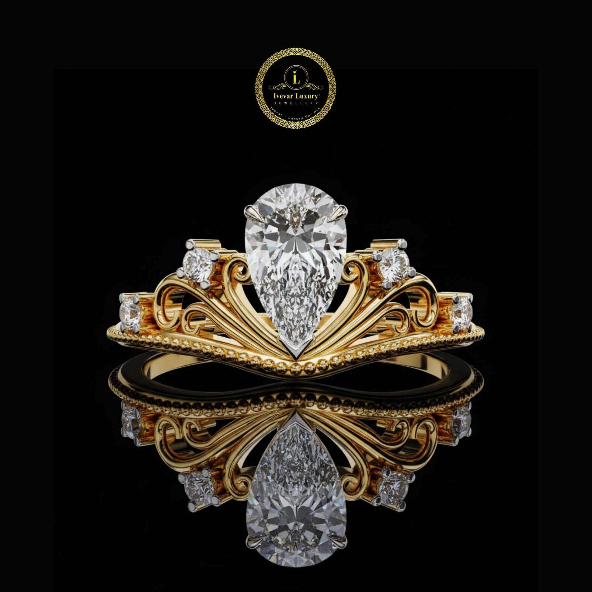 0.97 CT Classic Lab Grown Diamond Vintage Pear Cut Filigree Tiara Crown Royal Statement Wedding Ring for Her