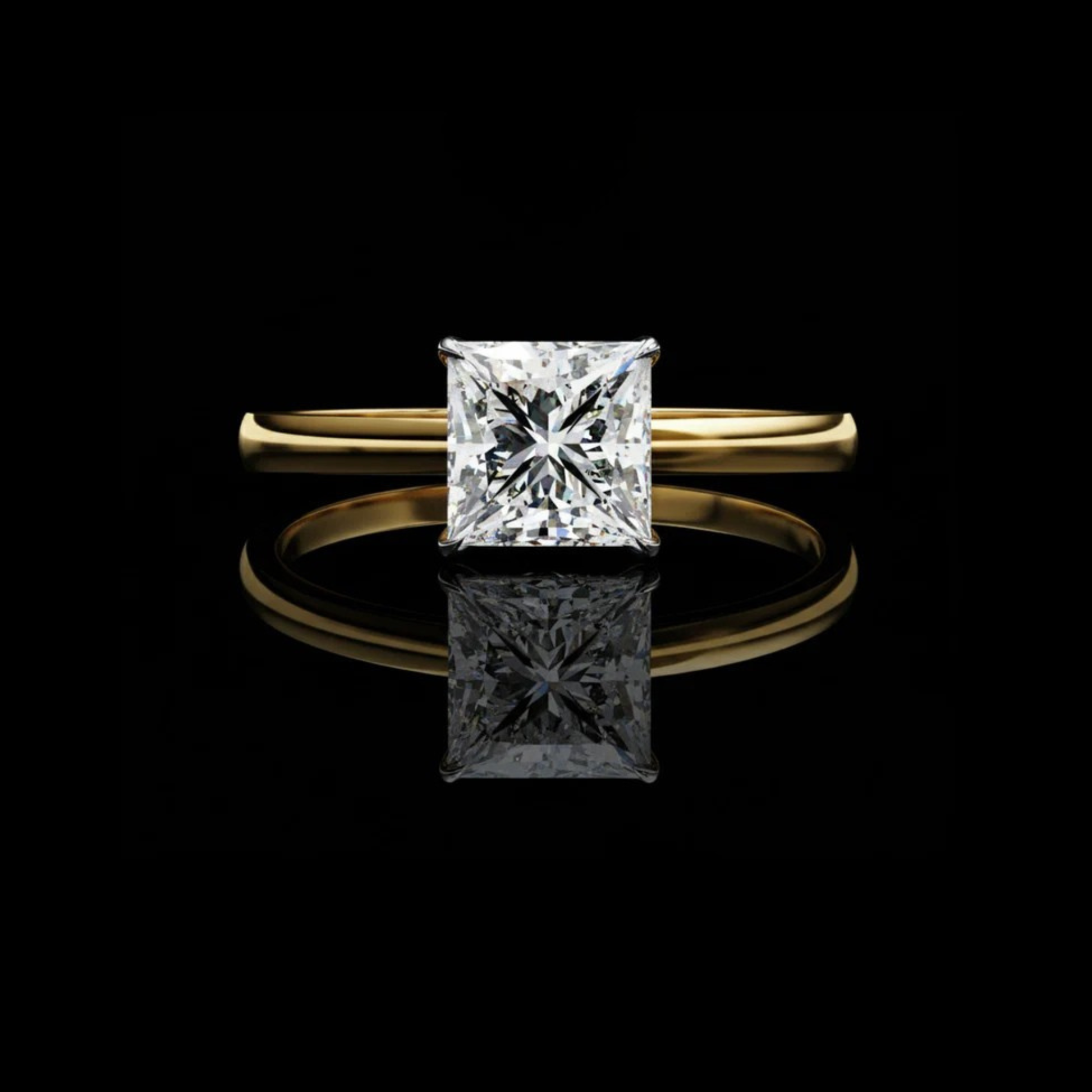 This elegant engagement ring features a brilliant princess-cut diamond that commands attention with its crisp facets and exceptional sparkle. Set atop a sleek band, the design emphasizes modern minimalism while highlighting the diamond’s geometric beauty. Perfect for those who appreciate clean lines, timeless sophistication, and a contemporary aesthetic, this ring offers a refined statement of luxury and enduring elegance by Ivevar.