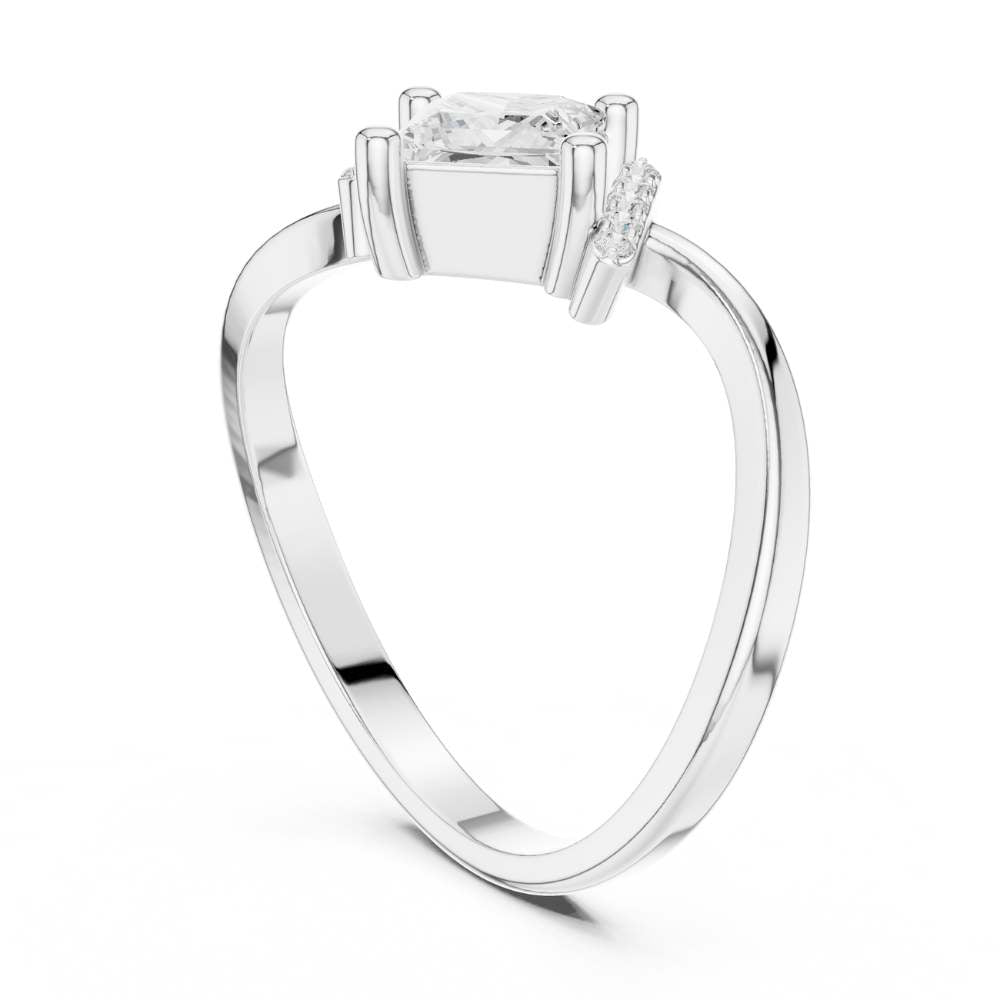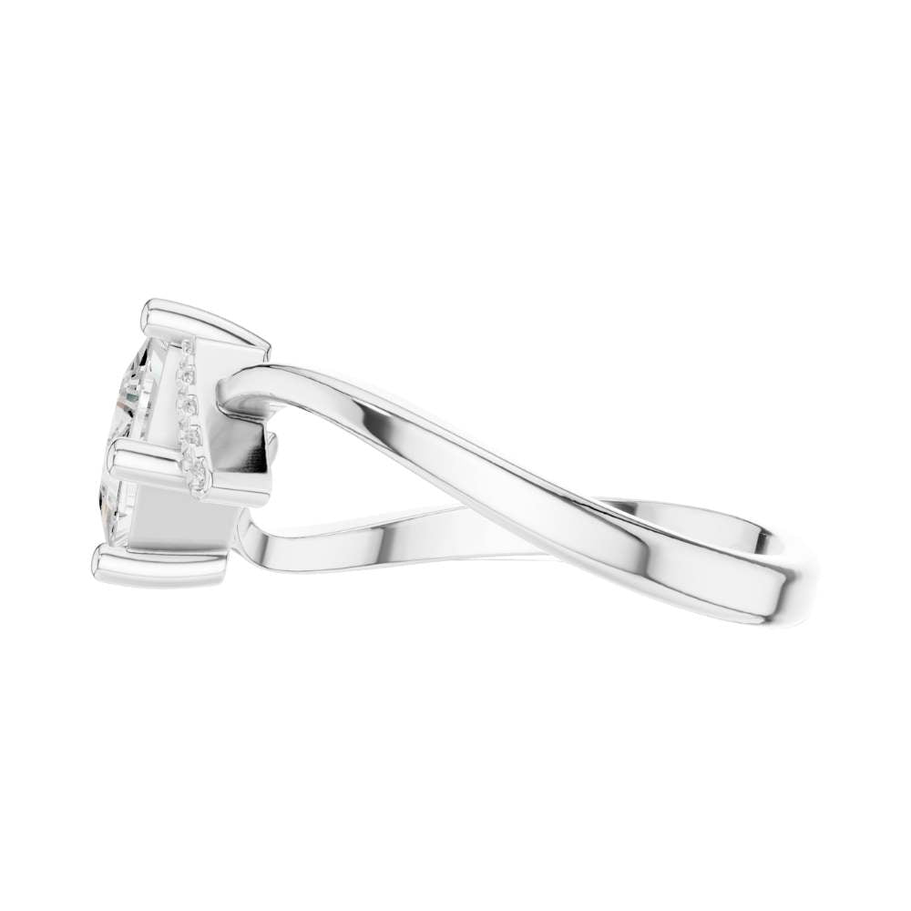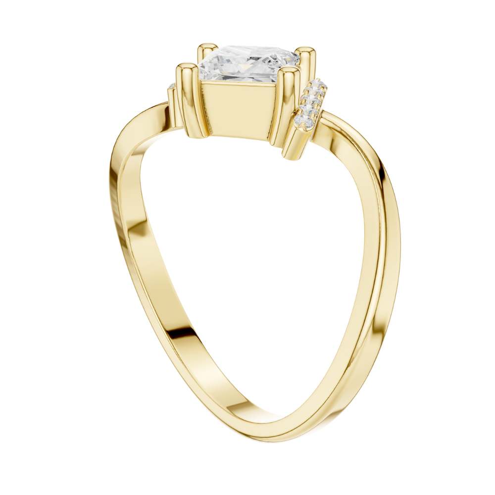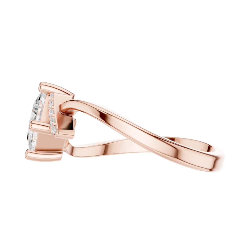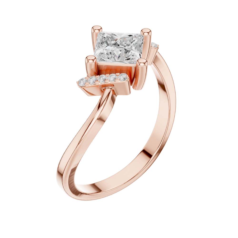 This captivating ring showcases a brilliant princess-cut center diamond set within a unique twisted gold band, blending elegance with contemporary flair. The diagonal orientation of the center stone adds a striking geometric touch, while pave-set accent diamonds on each side enhance its radiance and visual depth. With its graceful curves and bold architectural styling, this piece offers a sophisticated yet modern look—perfect for engagements, anniversaries, or anyone drawn to distinctive, artistic jewelry design by Ivevar.