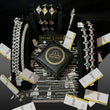 The links are heavily encrusted with sparkling lab-grown diamonds, utilizing a combination of cuts, most notably baguette-cut diamonds set in the center sections and smaller round brilliant-cut diamonds paving the spiky edges. This blend of cuts enhances the texture and light reflection. The overall aesthetic is edgy, hip-hop-inspired, and eye-catching, making a strong fashion statement. As it uses lab-grown diamonds, it offers an ethical and sustainable luxury option for those seeking a modern, standout piece of jewelry.