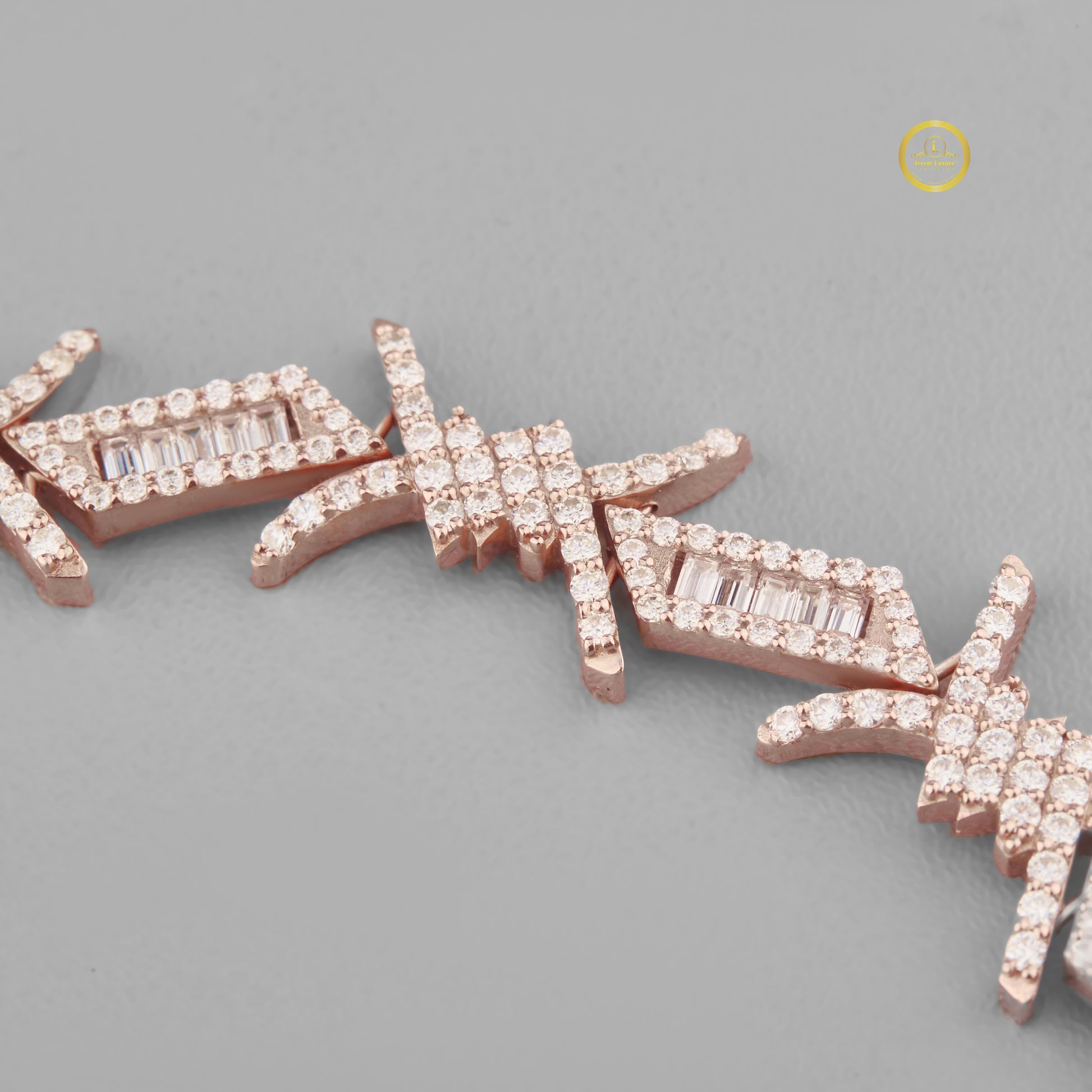 This bracelet is a striking lab-grown diamond bracelet with a bold, contemporary design that resembles barbed wire or stylized star/spike shapes. It features a continuous link pattern crafted in a rose gold-tone metal.